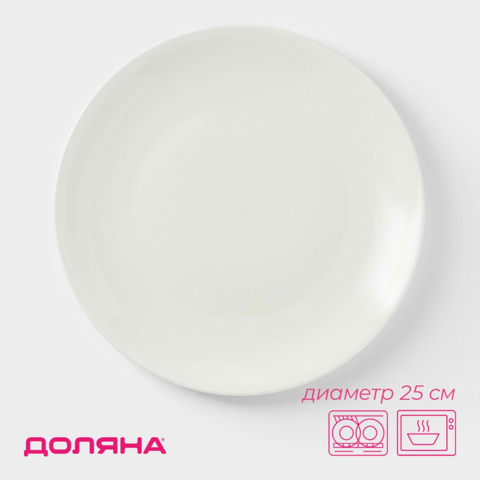 Тарелка обеденная Доляна White Label, d=25 см, фарфор, белая