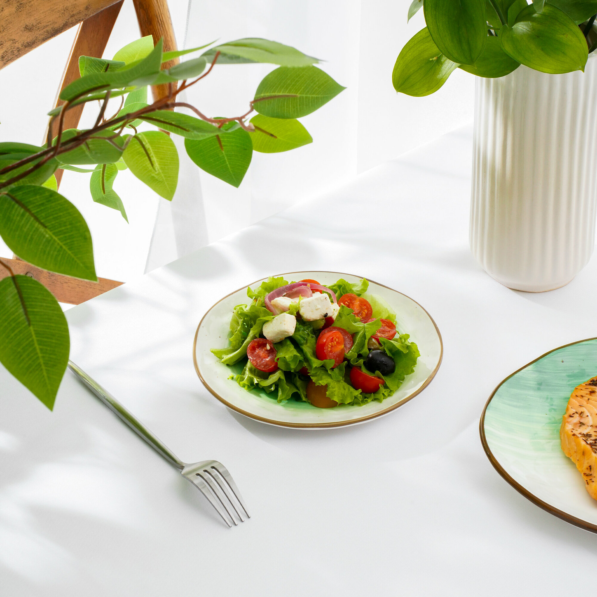 Тарелка Доляна «Космос», d=19 см, фарфор, белая, зелёная