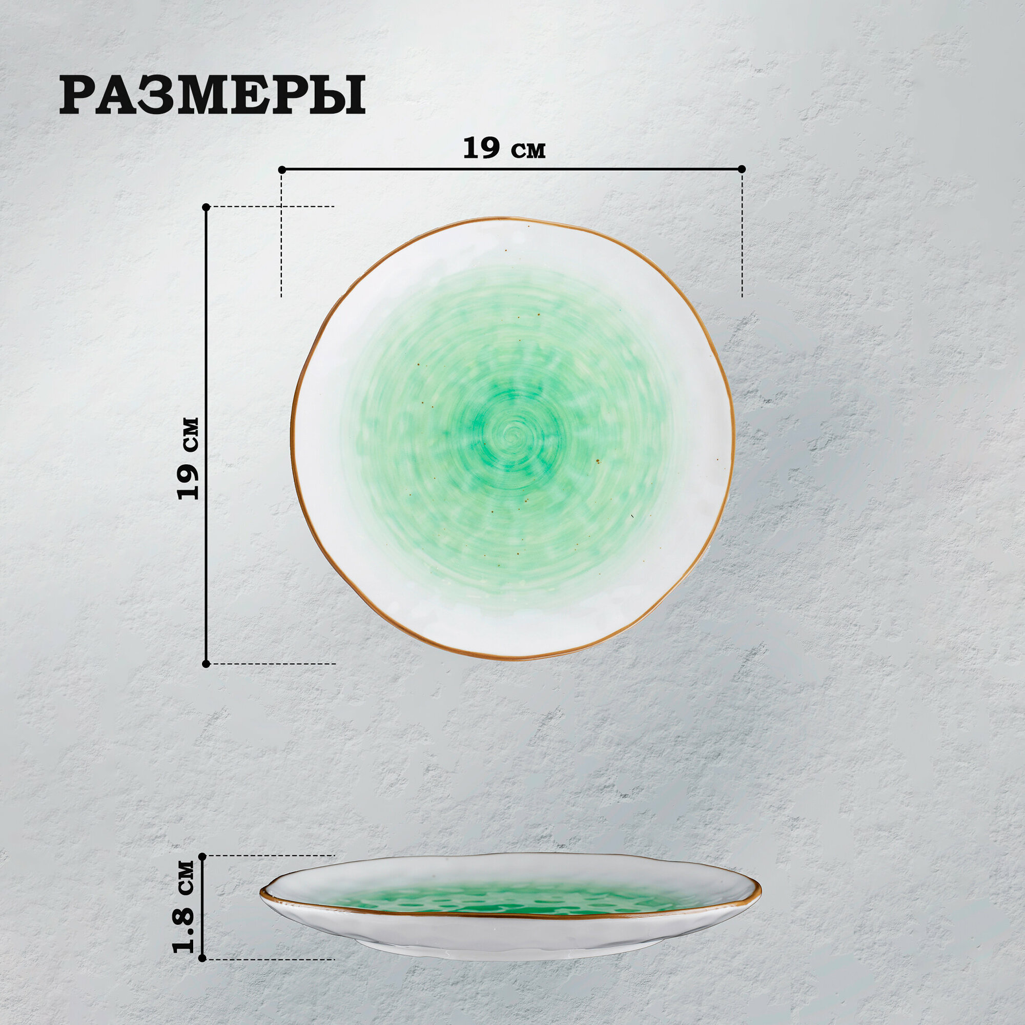 Тарелка фарфоровая пирожковая Доляна "Млечный путь", d 19 см, цвет зеленый