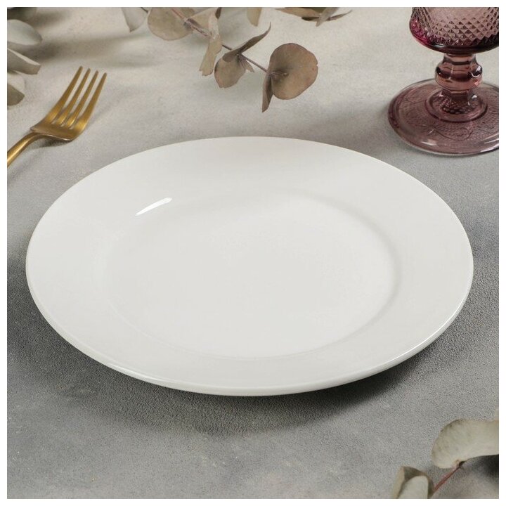 Купить Тарелка фарфоровая обеденная с утолщённым краем Доляна White Label, 300 мл, d=22,9 см, цвет белый