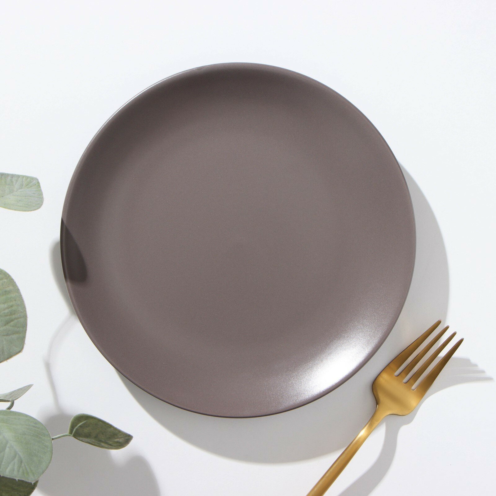 Тарелка керамическая обеденная для сервировки d=19 см Доляна «Пастель», цвет серо-коричневый