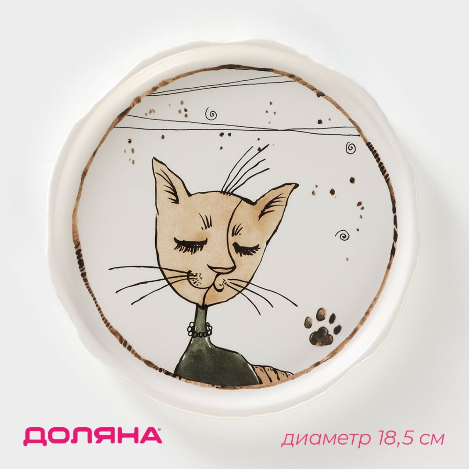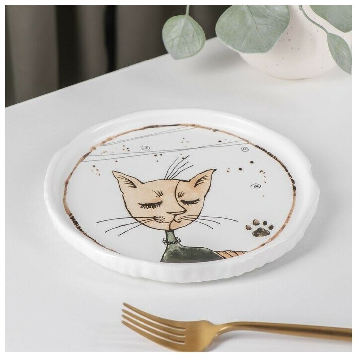 Купить Тарелка фарфоровая десертная Доляна «Коты-аристократы», d=18,5 см