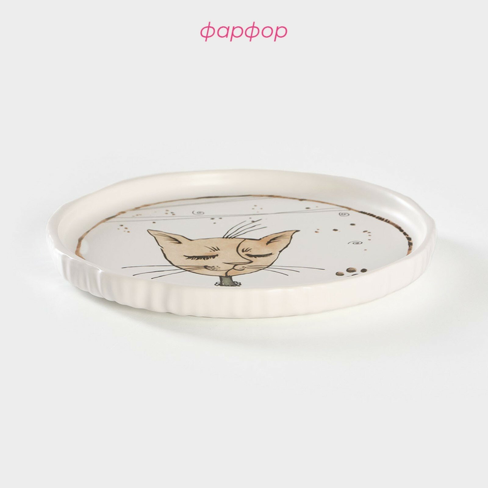 Тарелка фарфоровая десертная «Коты-аристократы», d=18,5 см