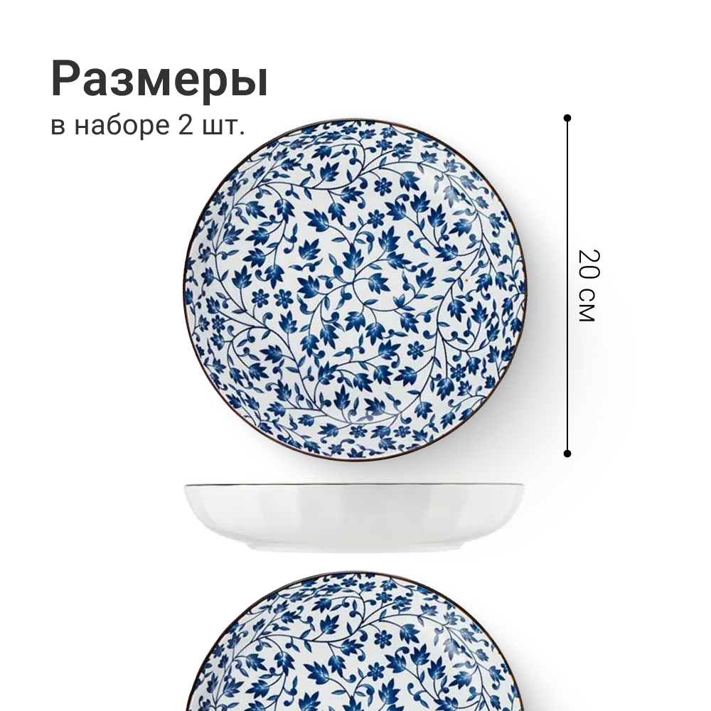 Набор тарелок Homium, Japanese Collection, Очарование, глубокие, цвет белый/синий, D20см