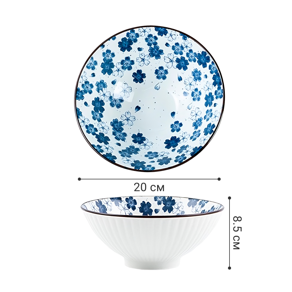 Пиала суповая керамическая Homium, Japanese Collection, Очарование, глубокая, цвет белый/синий, D20см