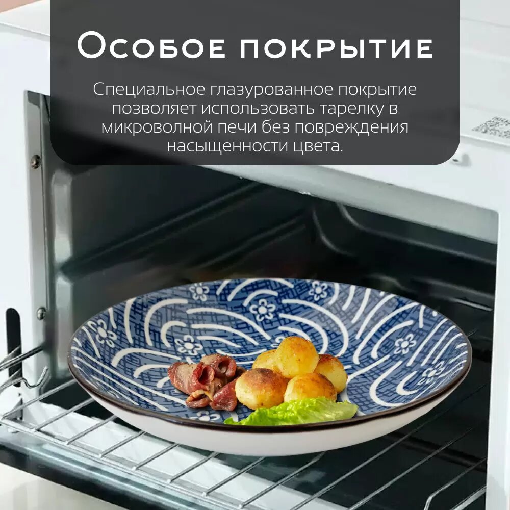 Керамическая тарелка Homium, Japanese Collection в японском стиле, обеденная тарелка с рисунком, голубой, D20см, набор 2шт.