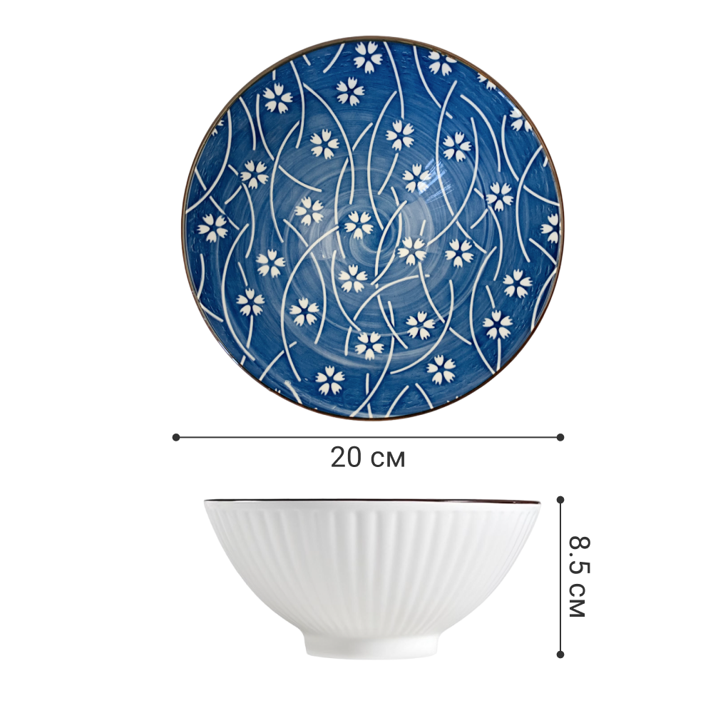 Пиала для супа и салата Homium, Japanese Collection, Очарование, керамическая, цвет белый/синий, D20см