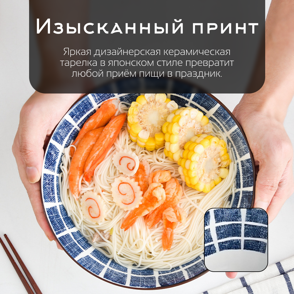 Керамическая тарелка Homium, Japanese Collection в японском стиле, обеденная тарелка с рисунком, голубой, D20см, набор 2шт.
