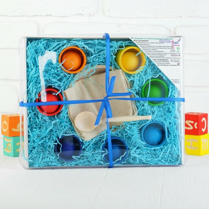 Уланик Сортер «Радуга. Шарики в стаканчиках» 7 цветов интересное: