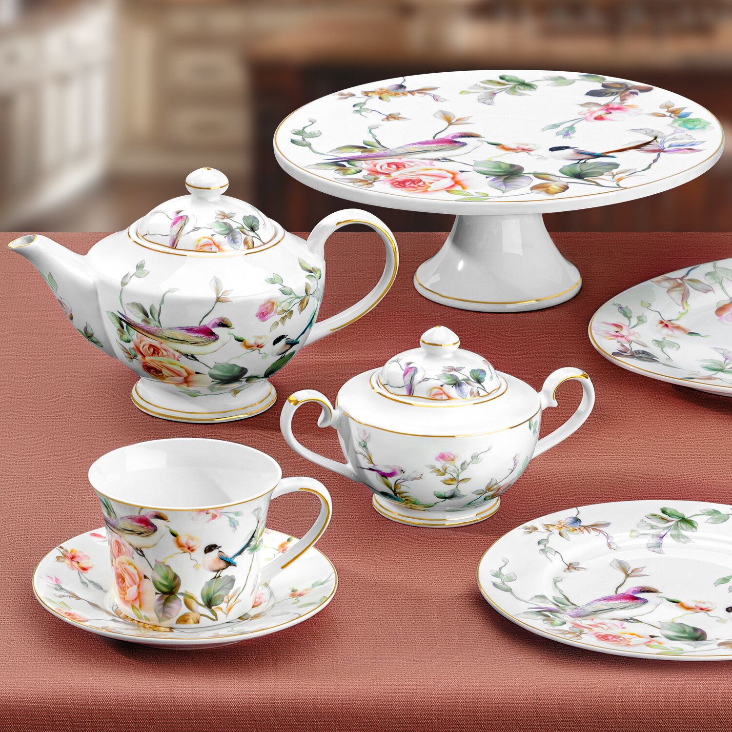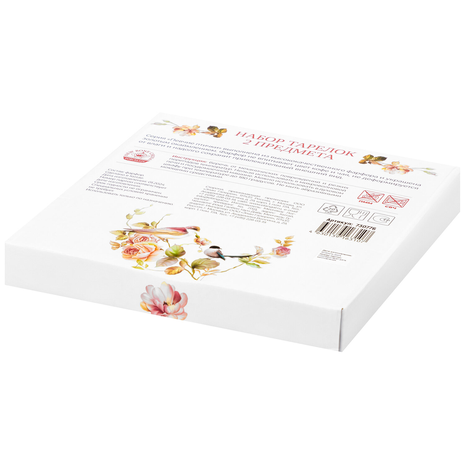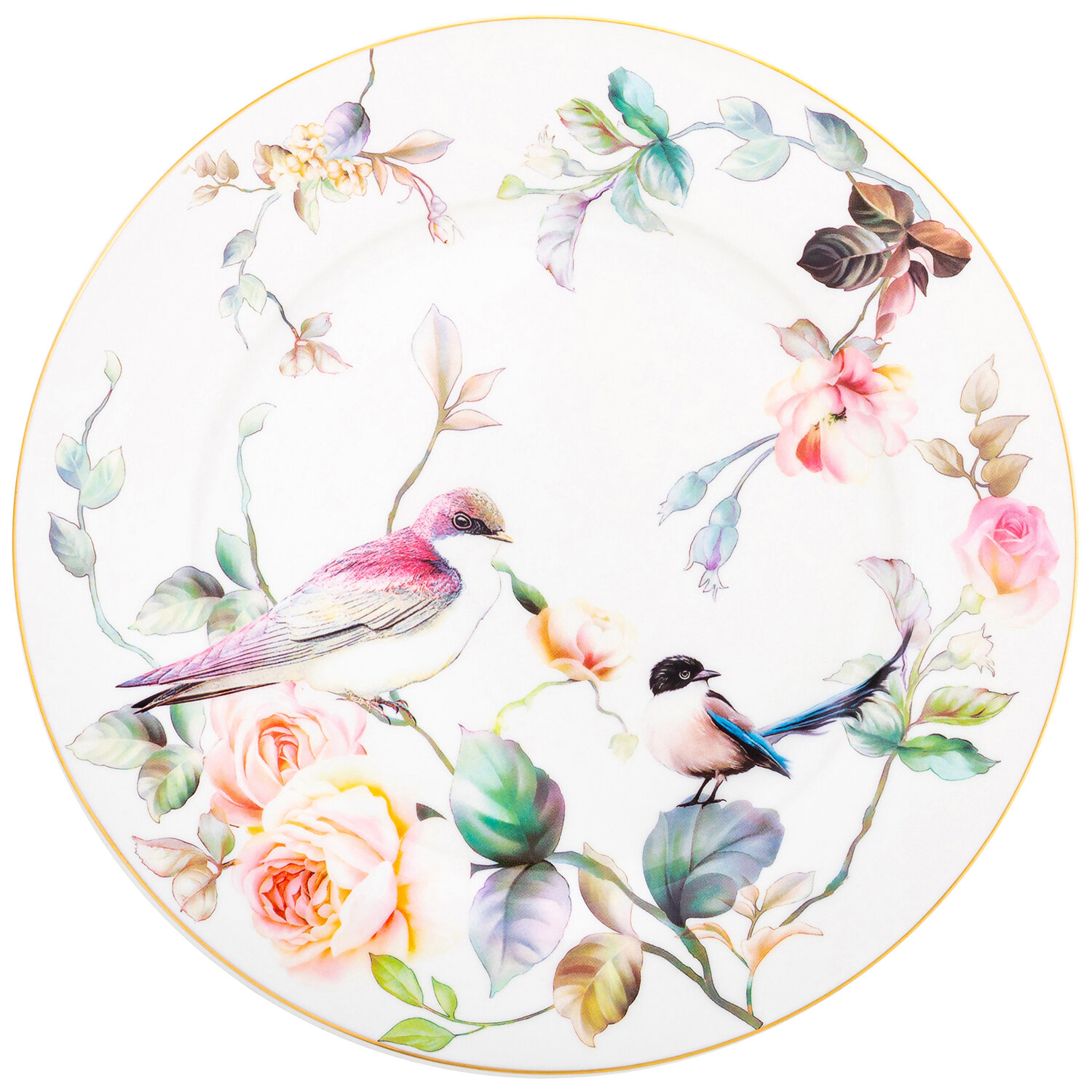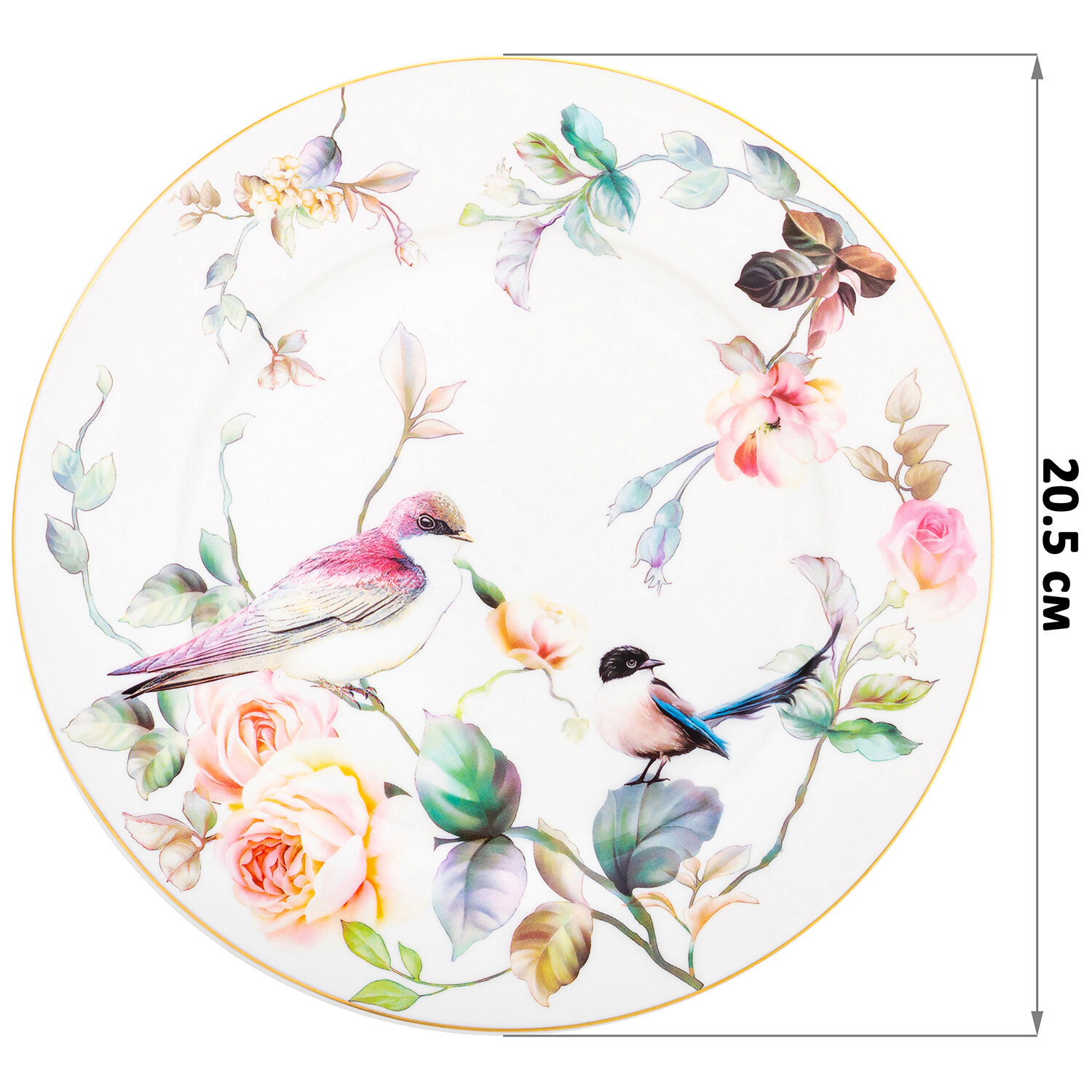 | Дополнительная информация | Набор круглых тарелок для закуски 2 предмета "Певчие птички" 20,5х20,5х1,5 см - каждая, NEW BONE CHINA |