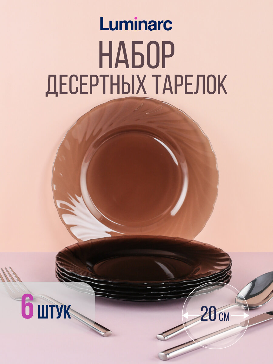 Набор десертных тарелок Luminarc ОКЕАН ЭКЛИПС 20см 6 штук, стекло