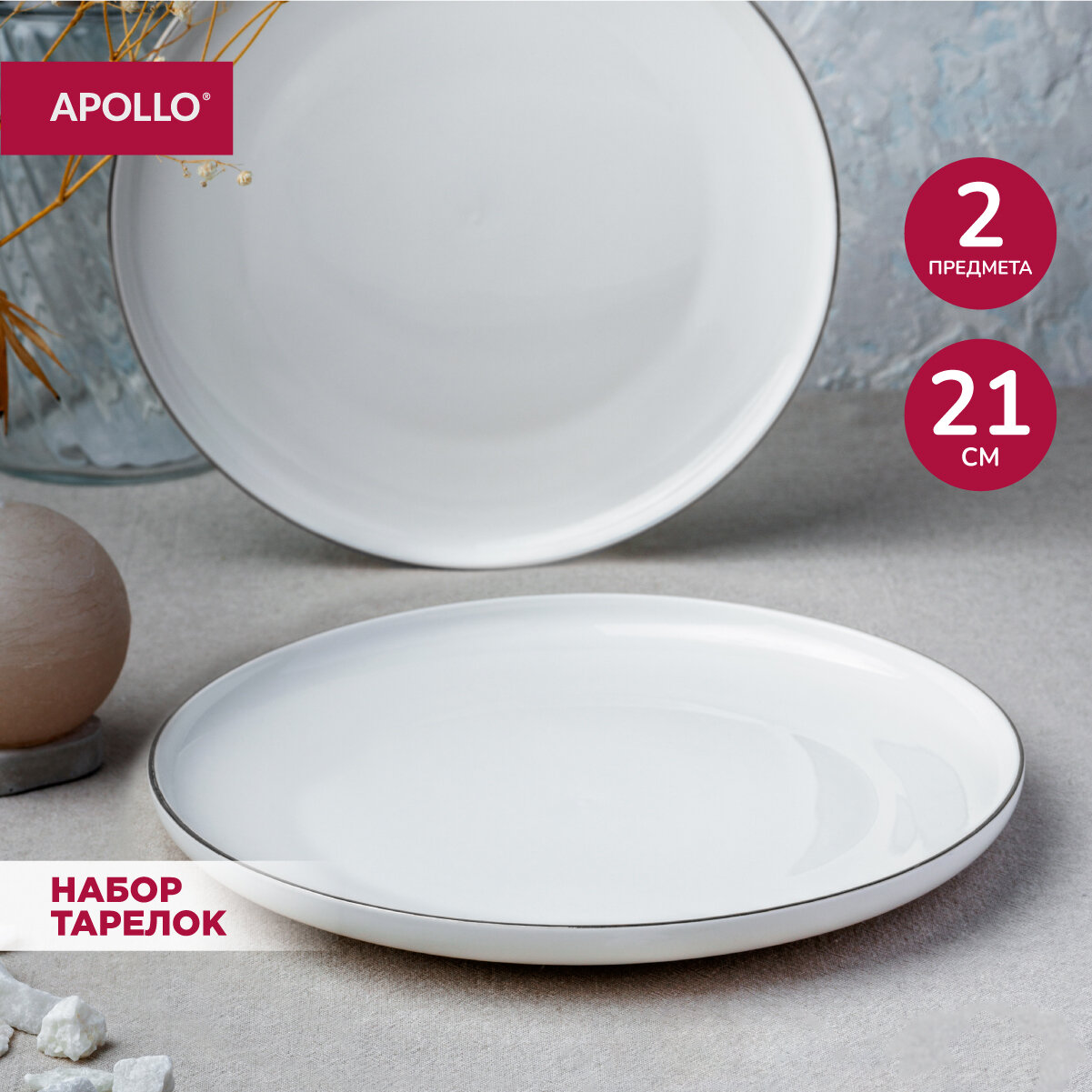 Тарелка обеденная, набор тарелок для сервировки стола APOLLO "Cintargo", 21 см, 2 предмета, фарфор. интересное: