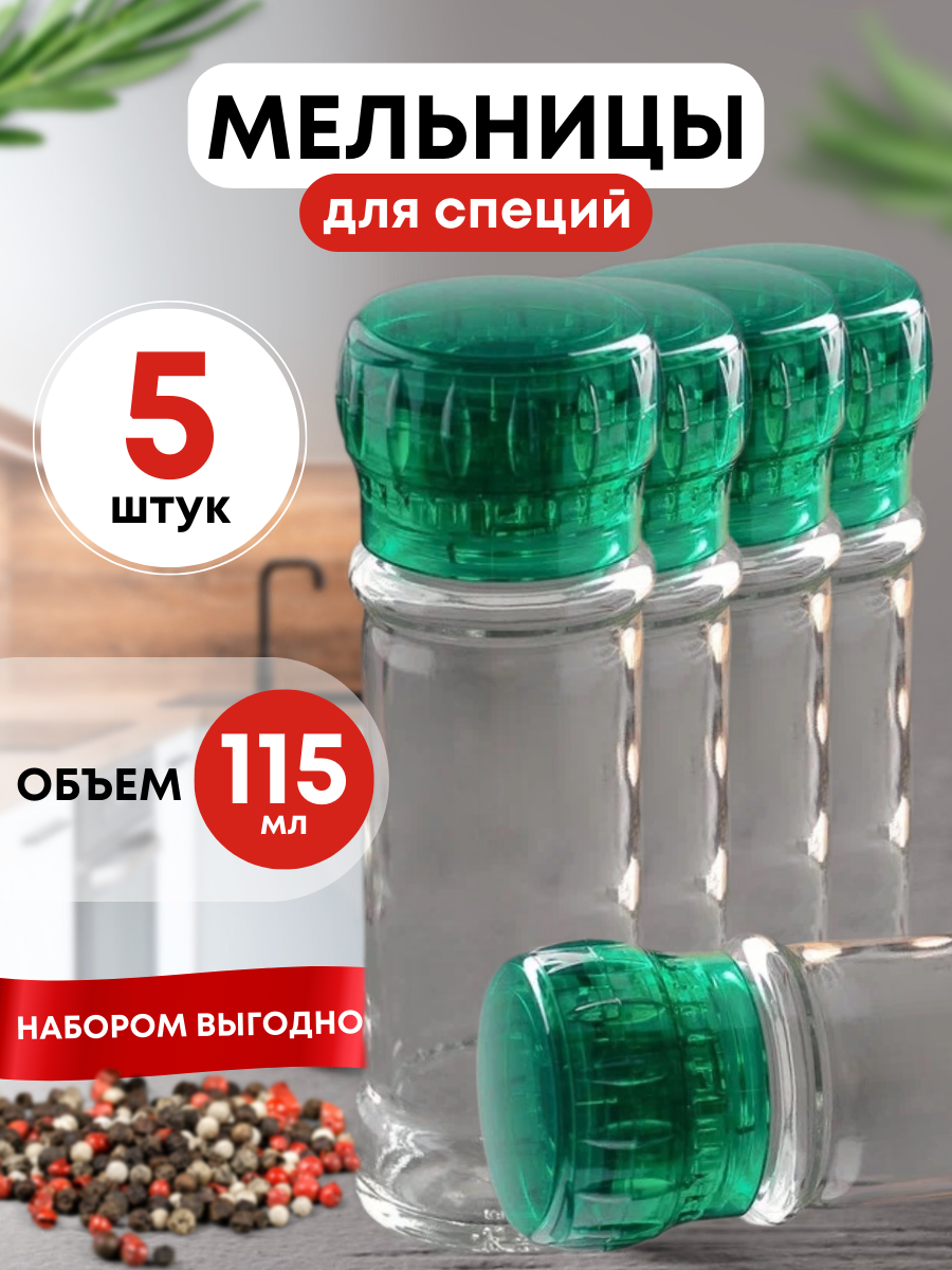 Купить Мельницы многоразовые зеленые стеклянные для перца и соли 5шт