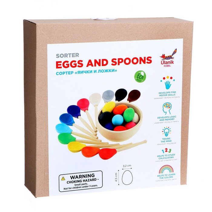 Ulanik Набор развивающий из дерева Яички и ложки / сортер игра для детей