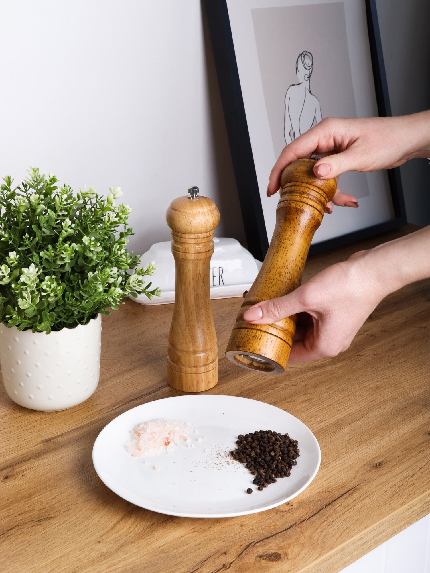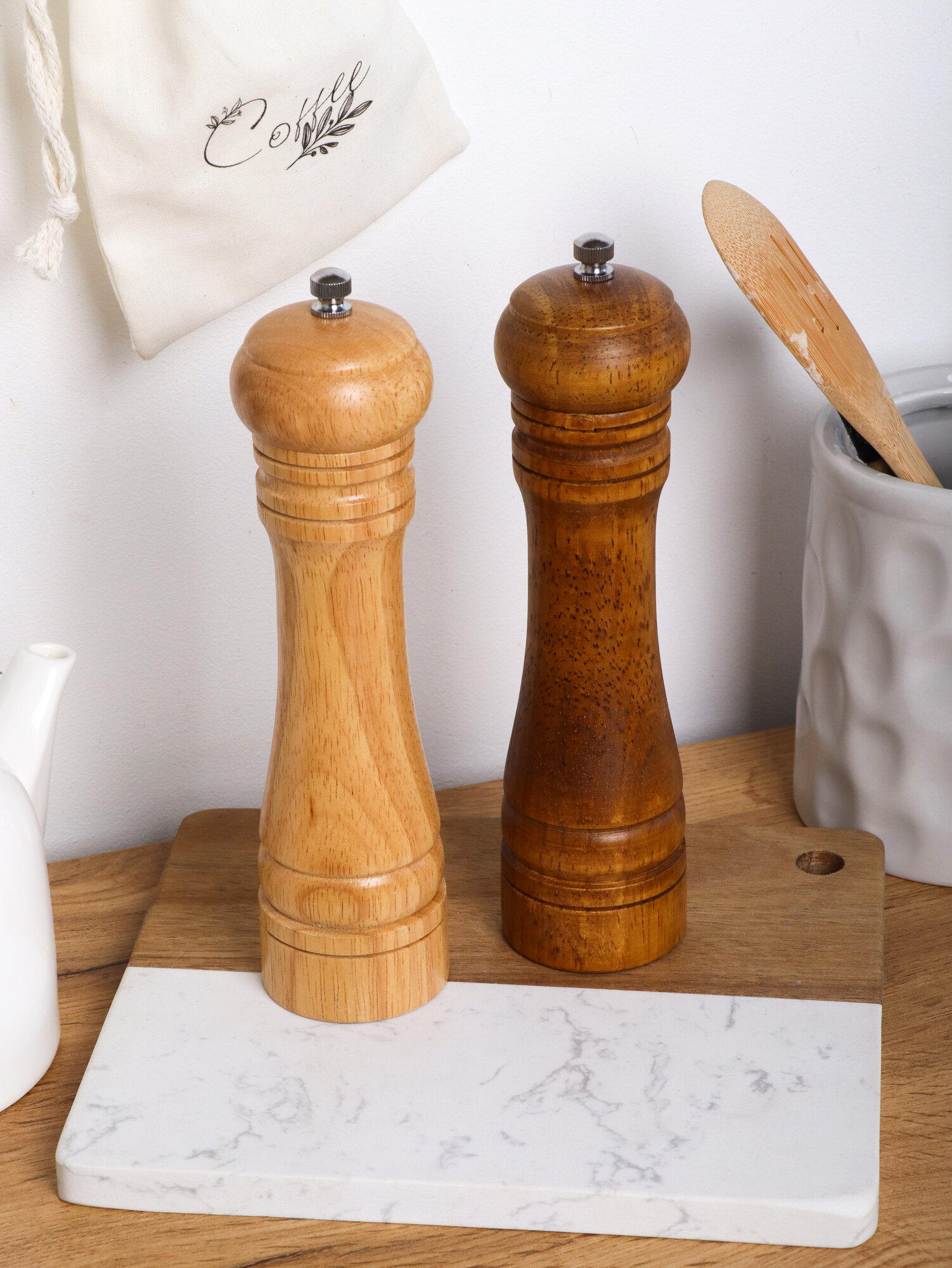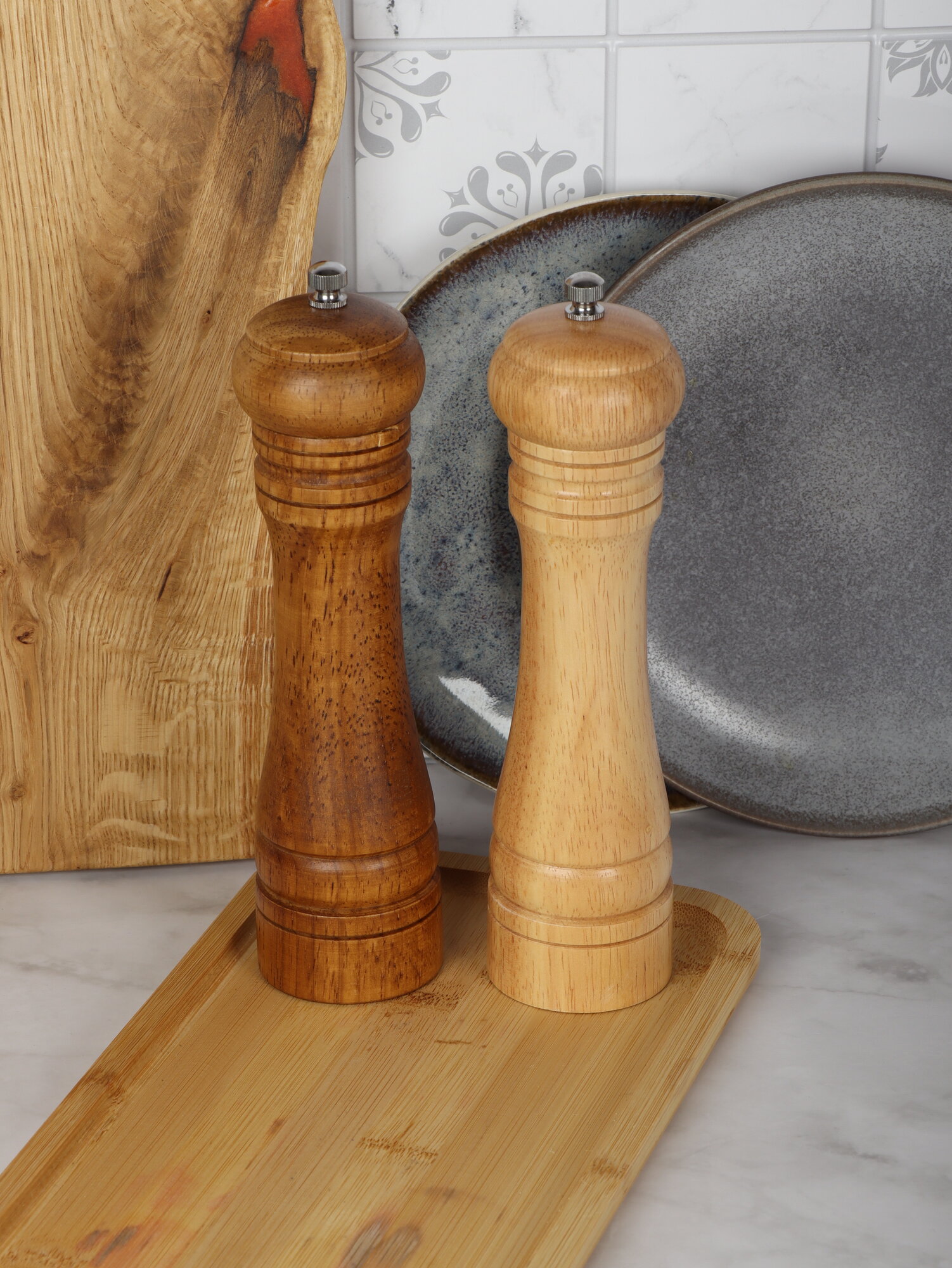 Купить Мельница для специй ручная, деревянная солонка и перечница, высота 22 см., набор 2 шт.