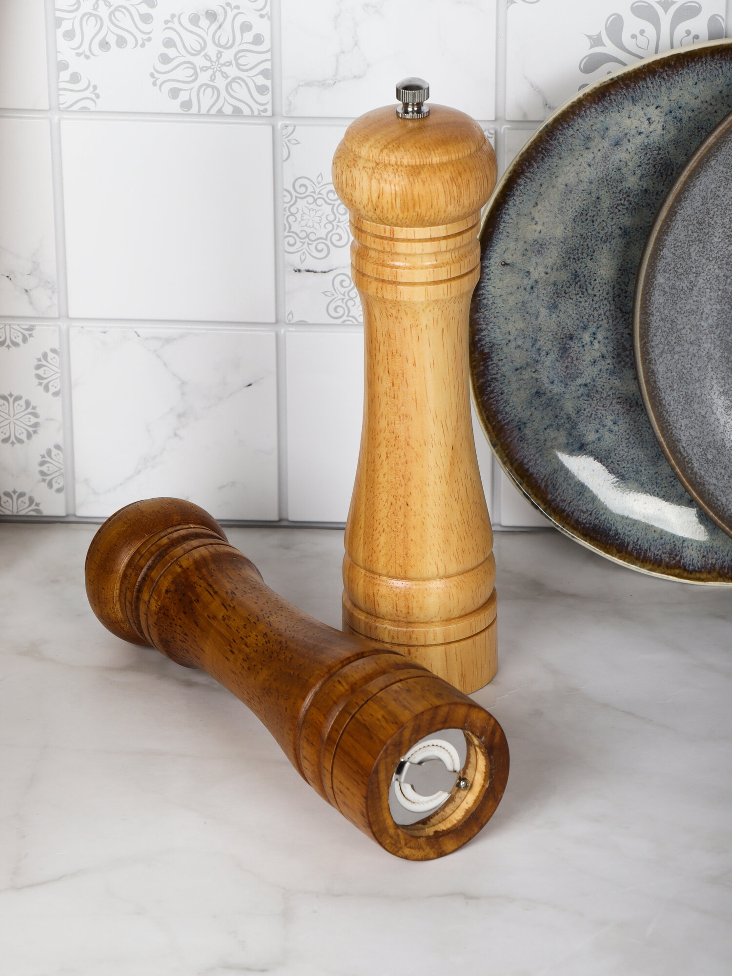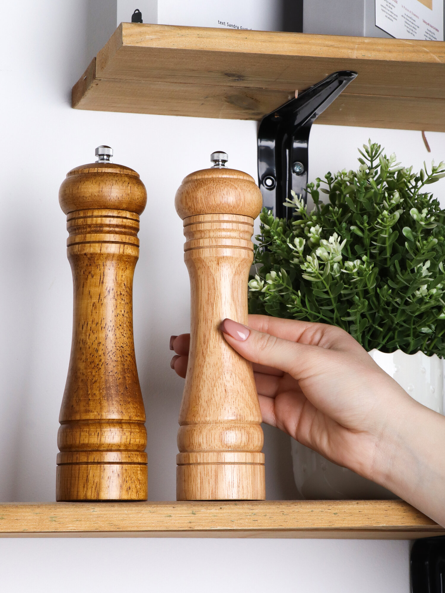 Мельница для специй ручная, деревянная солонка и перечница, высота 22 см., набор 2 шт. интересное: