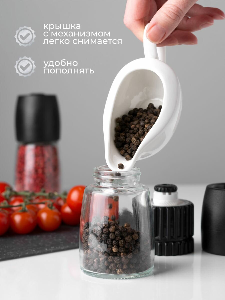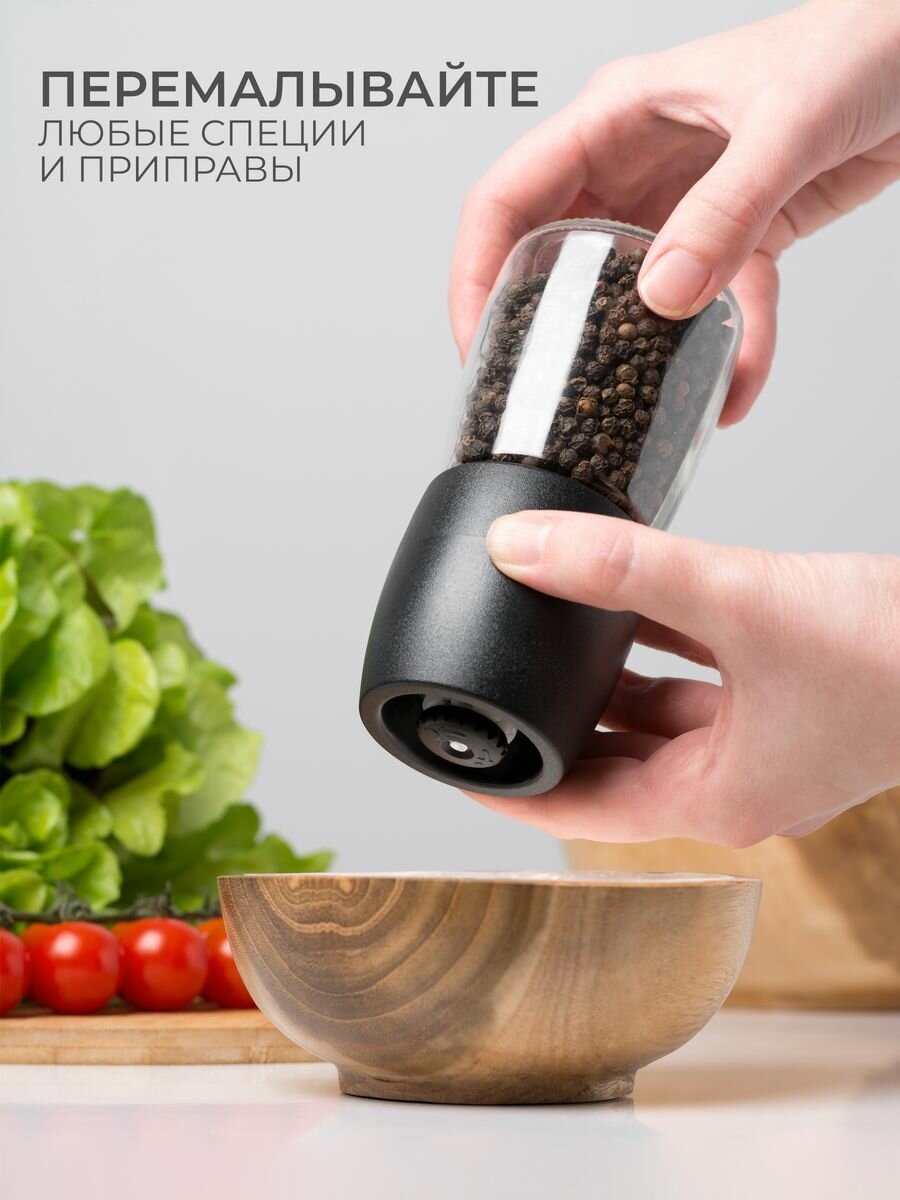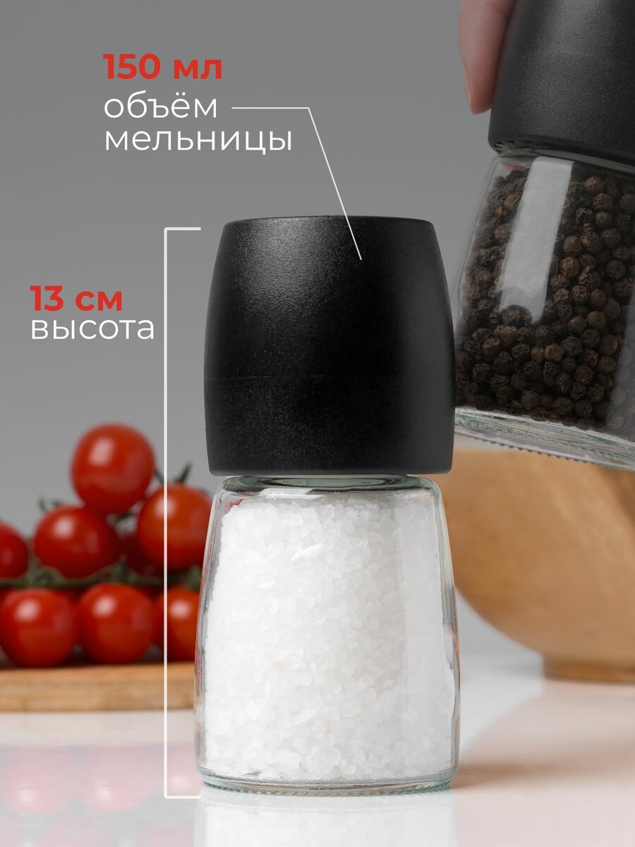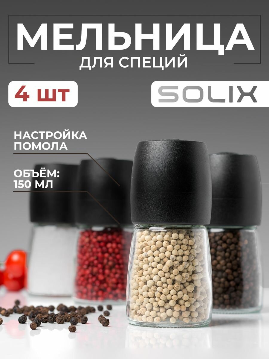 Ручная мельница для перца, соли и специй SOLIX, 150мл, стекло, керамика, пластик, 4шт. интересное: