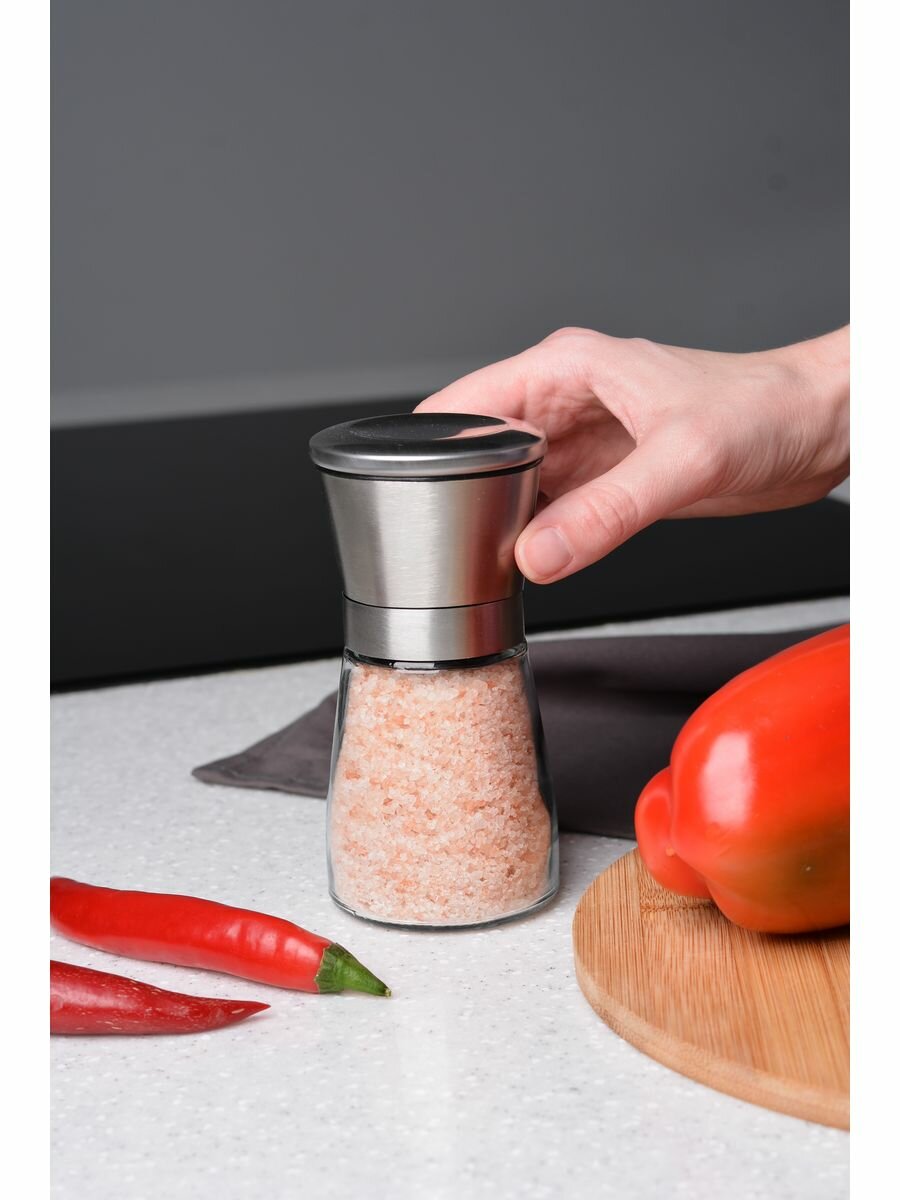 Ручная мельница для перца, соли и специй с крышкой SOLIX, 150мл, стекло, керамика, пластик, 1шт.