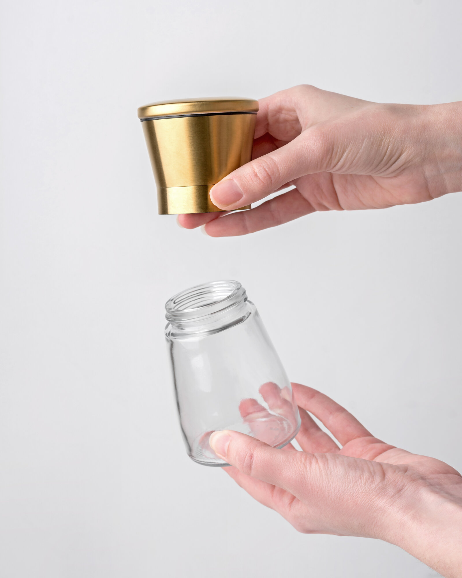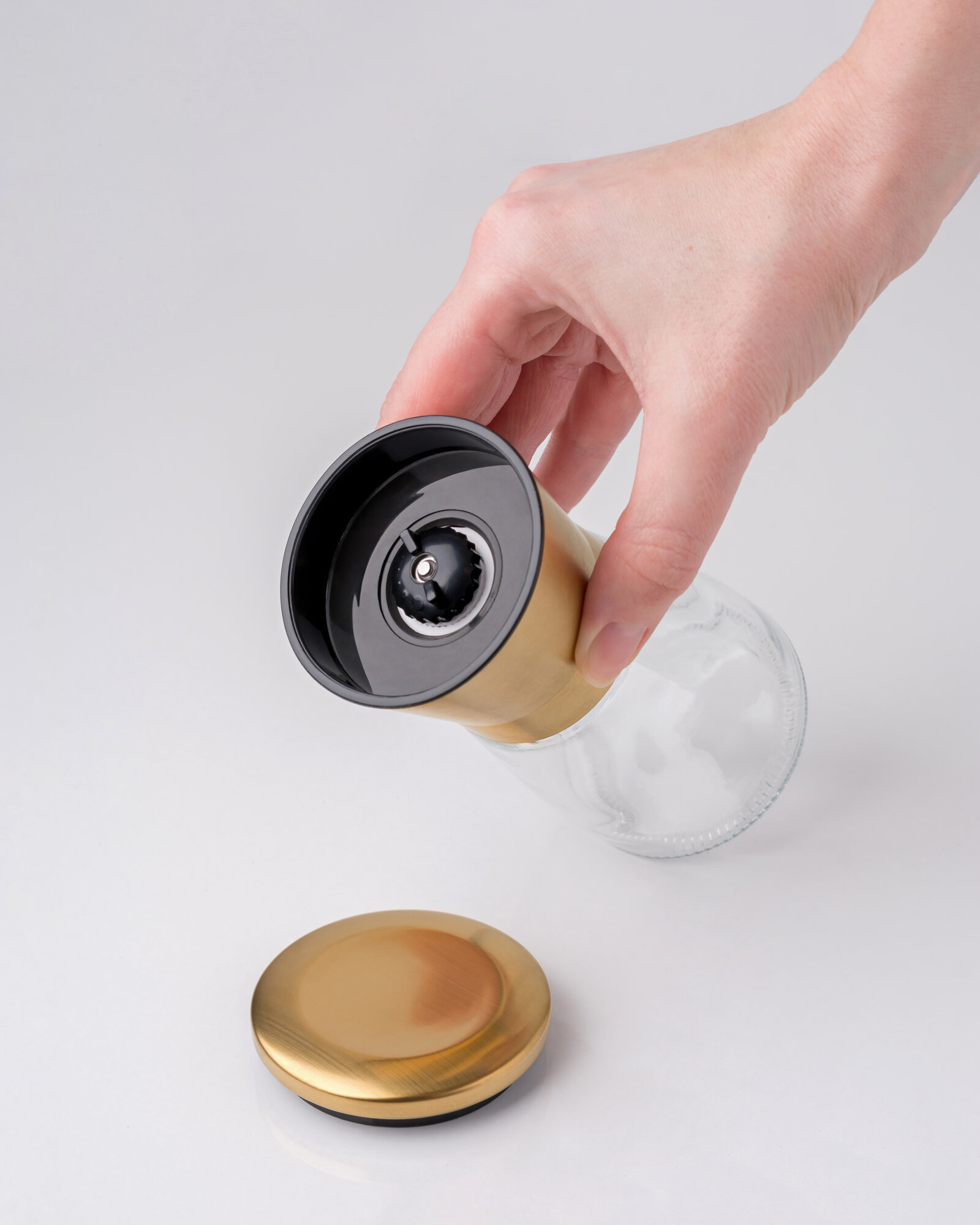 Ручная мельница для перца, соли и специй с крышкой SOLIX, 150мл, стекло, керамика, металл, золотой 1шт. интересное:
