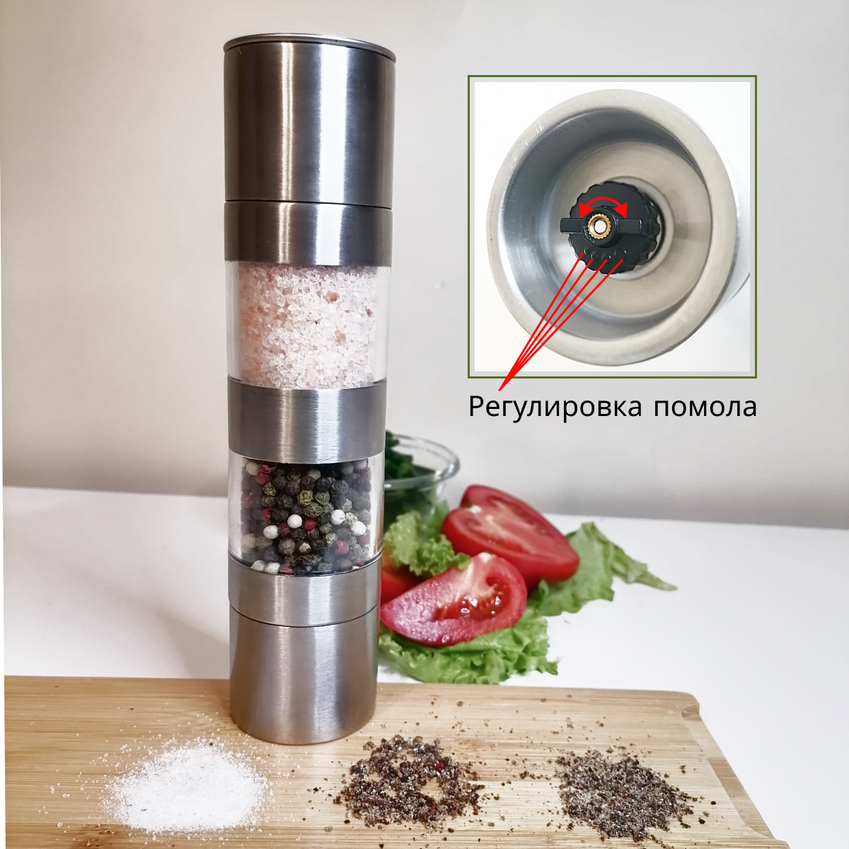 Мельница ручная механическая, два отсека, перцемолка, мельница для соли интересное: