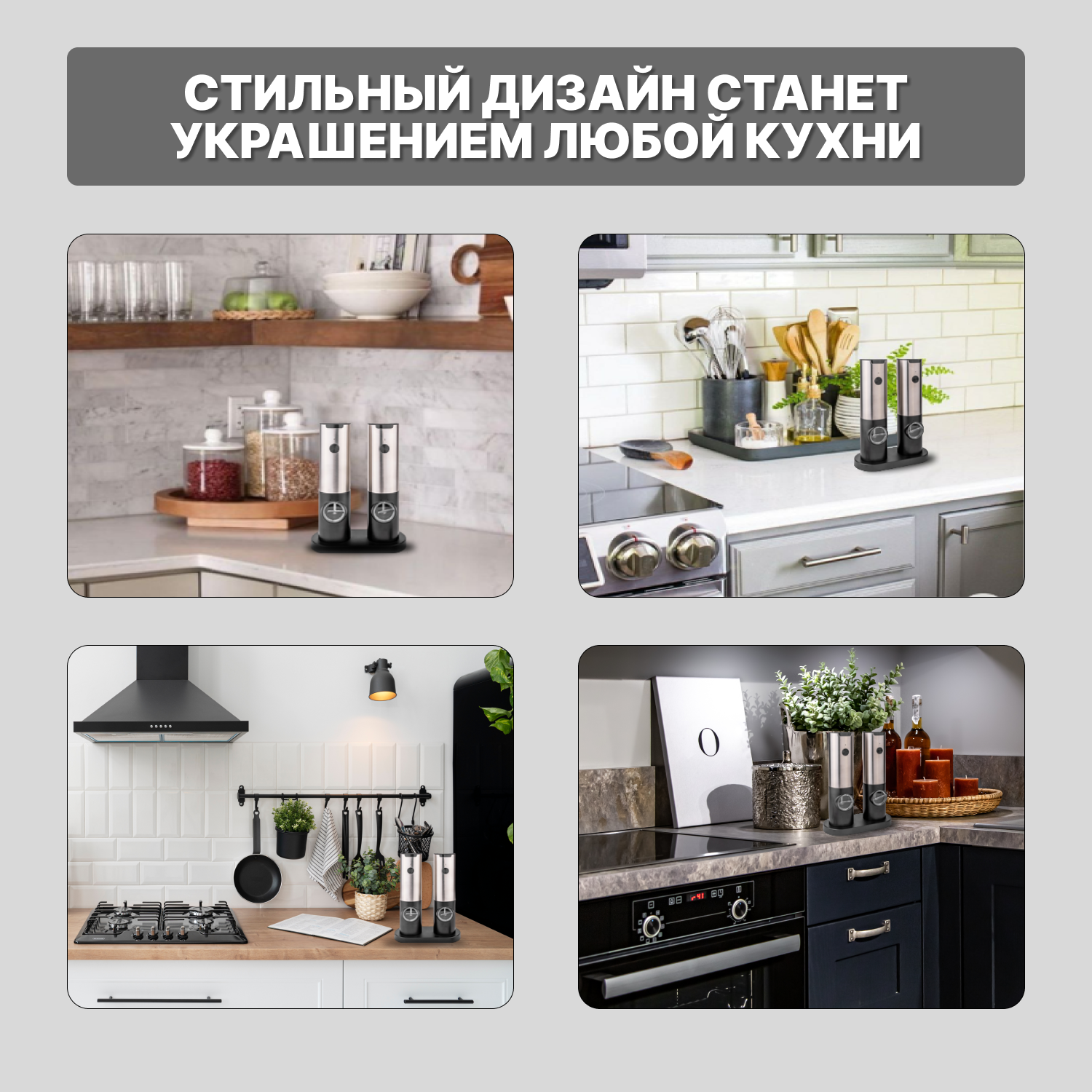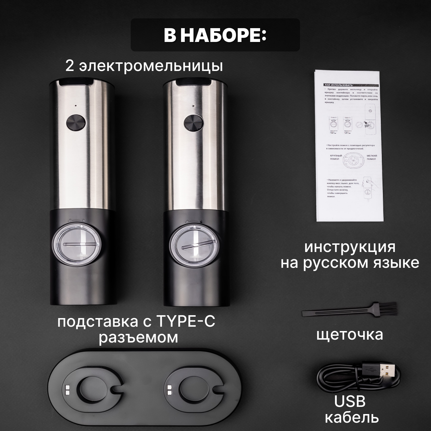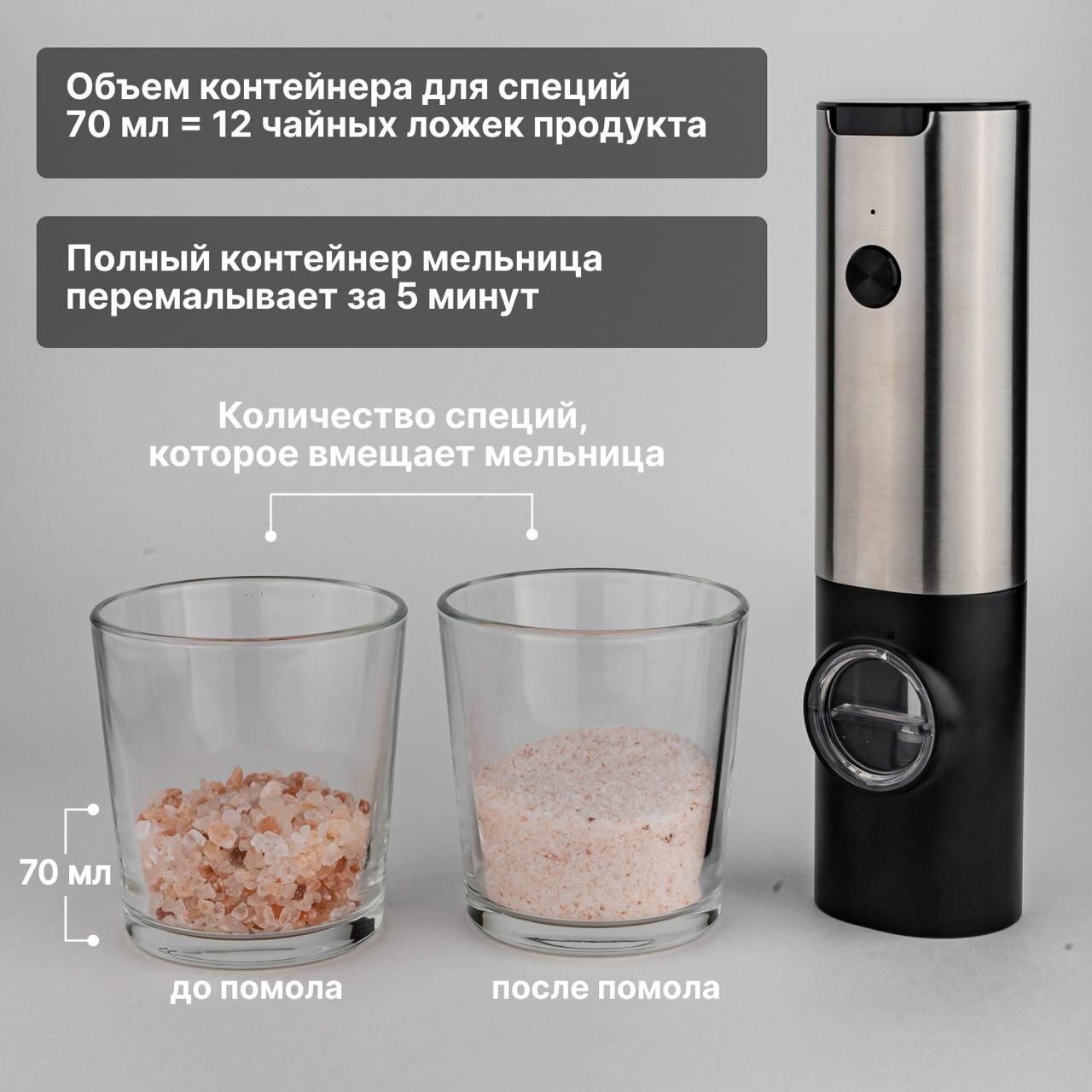 Мельницы для специй с подсветкой, плавной регулировкой помола и аккумулятором набор из 2-х штук интересное: