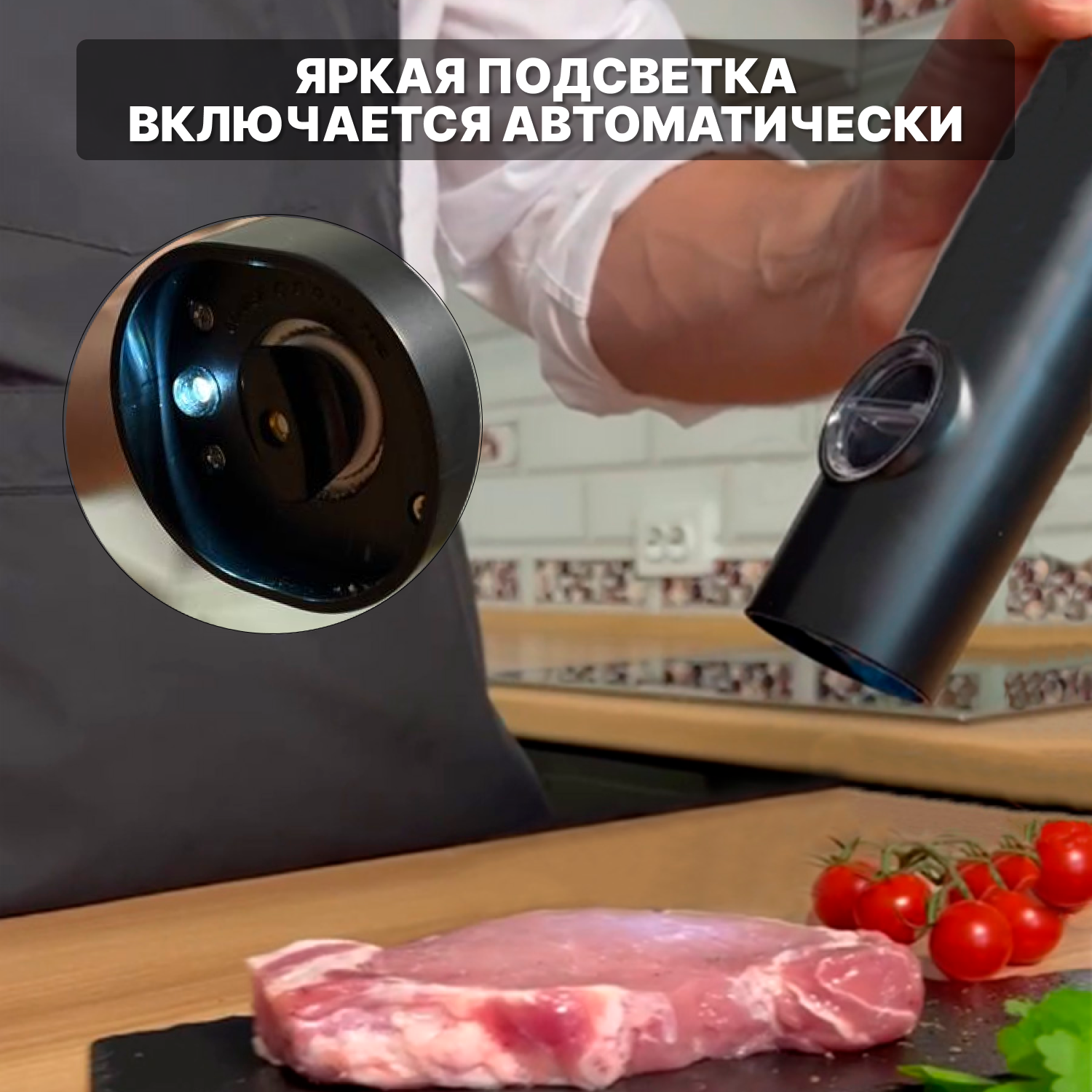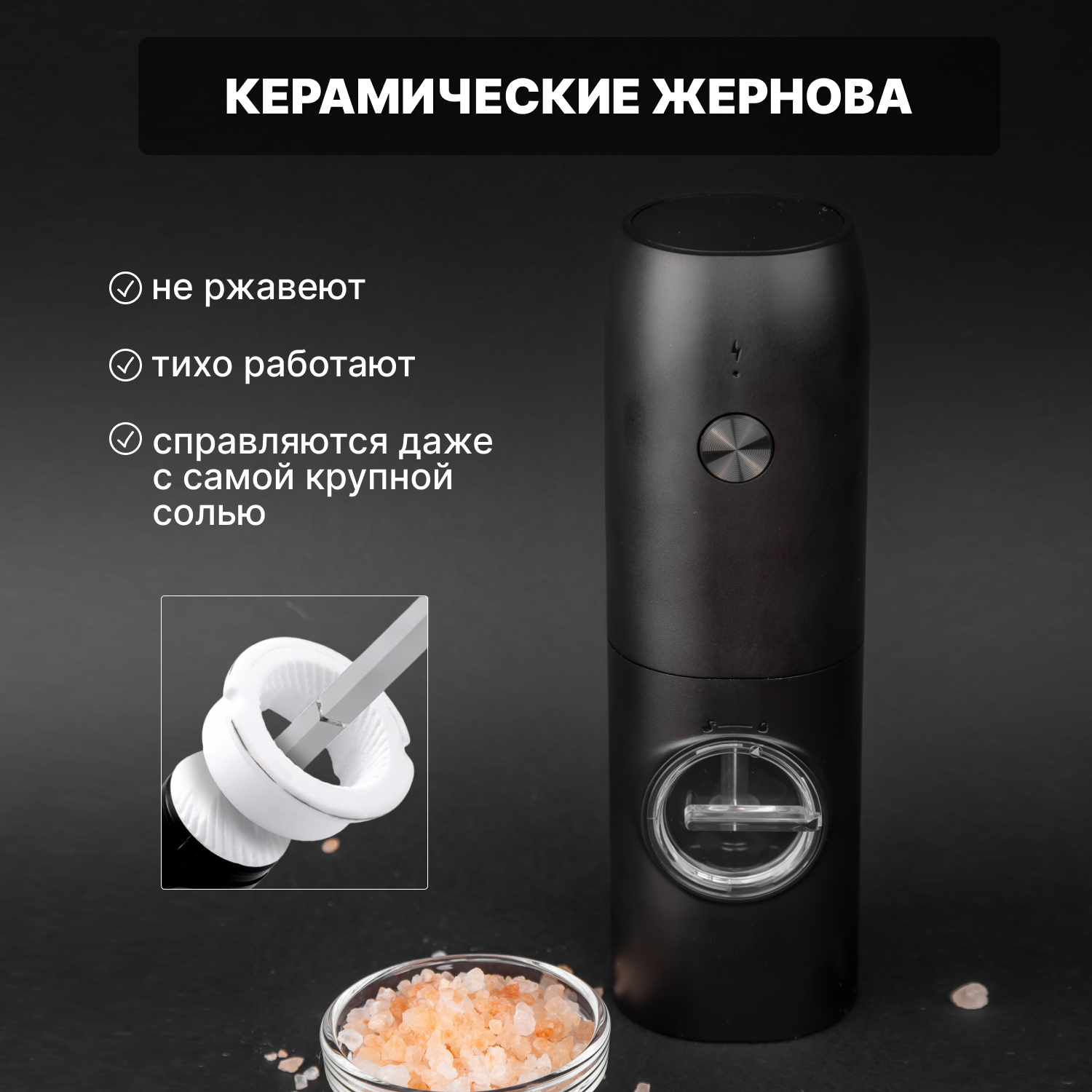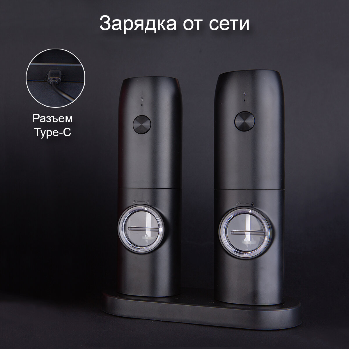 Мельницы для специй электрические черные с подсветкой, плавной регулировкой помола и аккумулятором набор из 2 штук интересное: