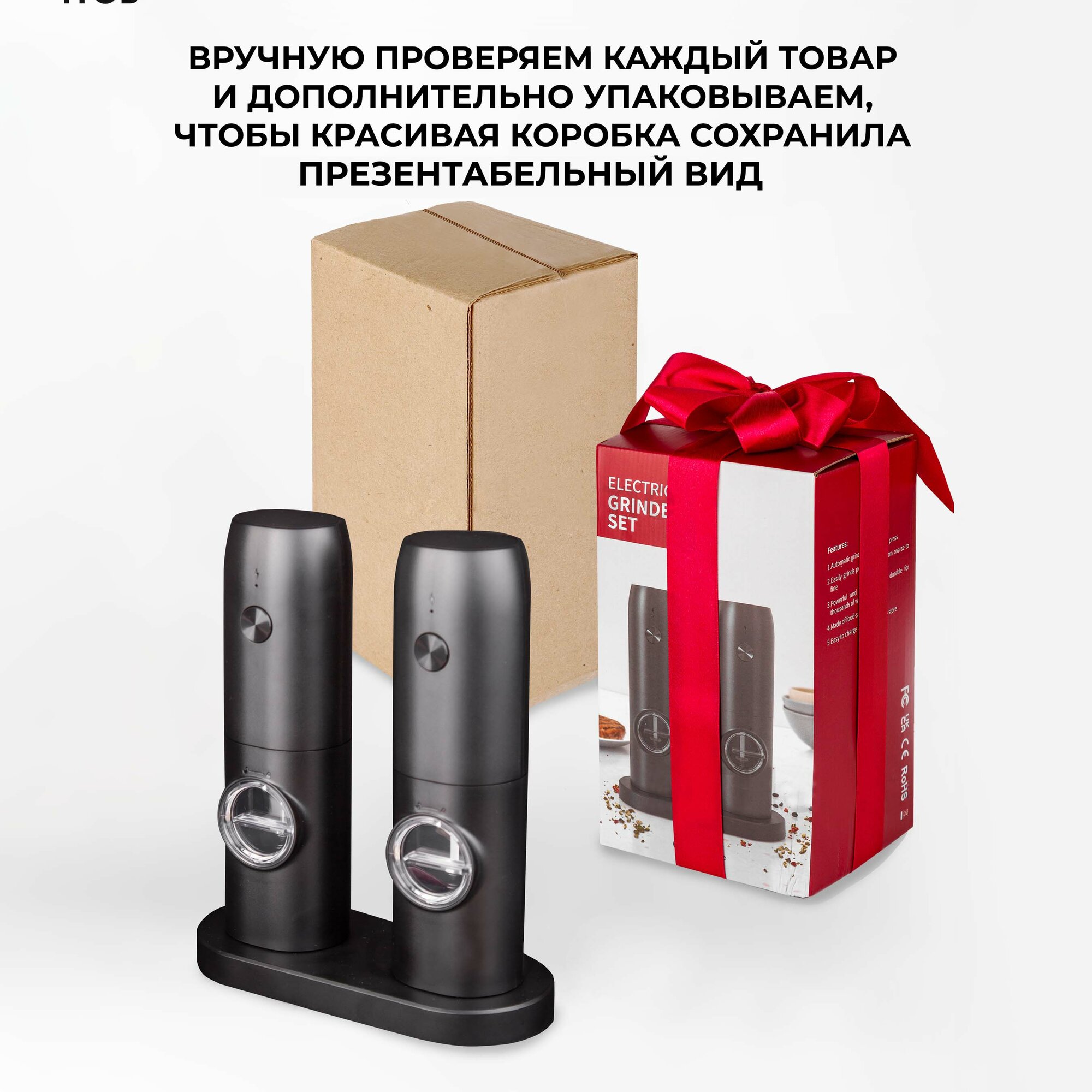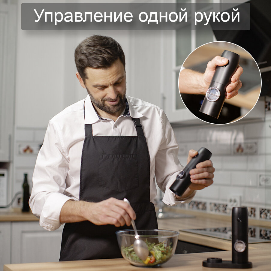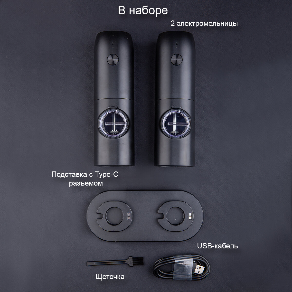 Мельницы для специй электрические черные с подсветкой, плавной регулировкой помола и аккумулятором набор из 2 штук интересное: