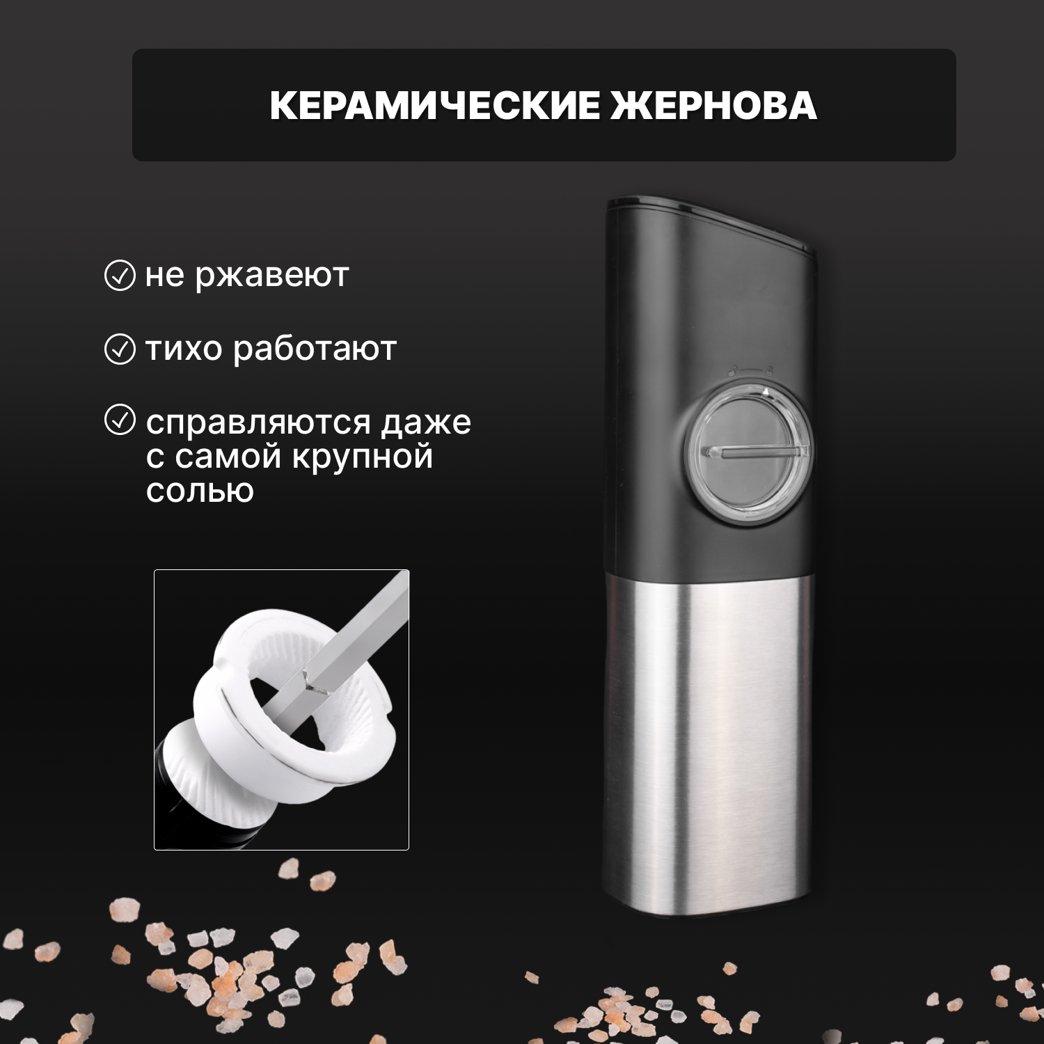Купить Мельницы для специй электрические гравитационные с подсветкой, плавной регулировкой помола и аккумулятором набор из 2-х штук
