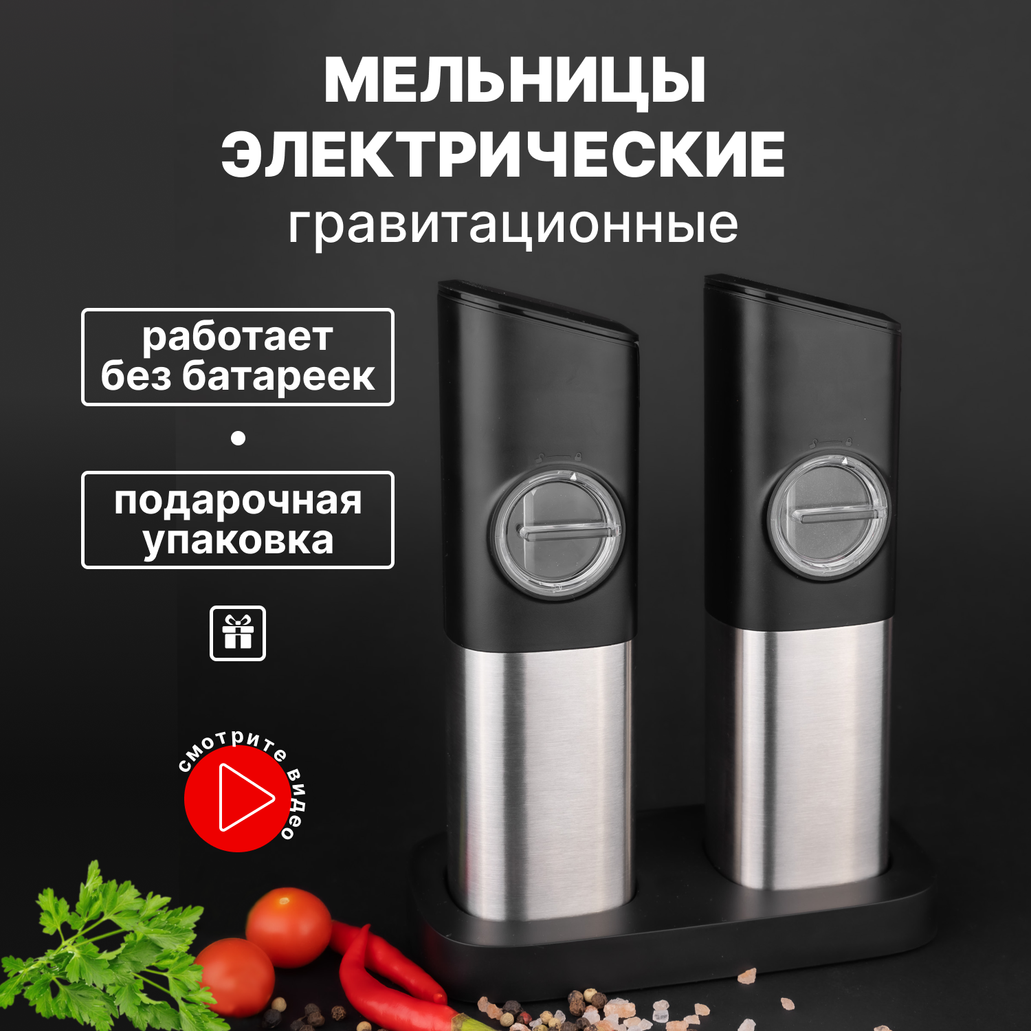 Мельницы для специй электрические гравитационные с подсветкой, плавной регулировкой помола и аккумулятором набор из 2-х штук интересное: