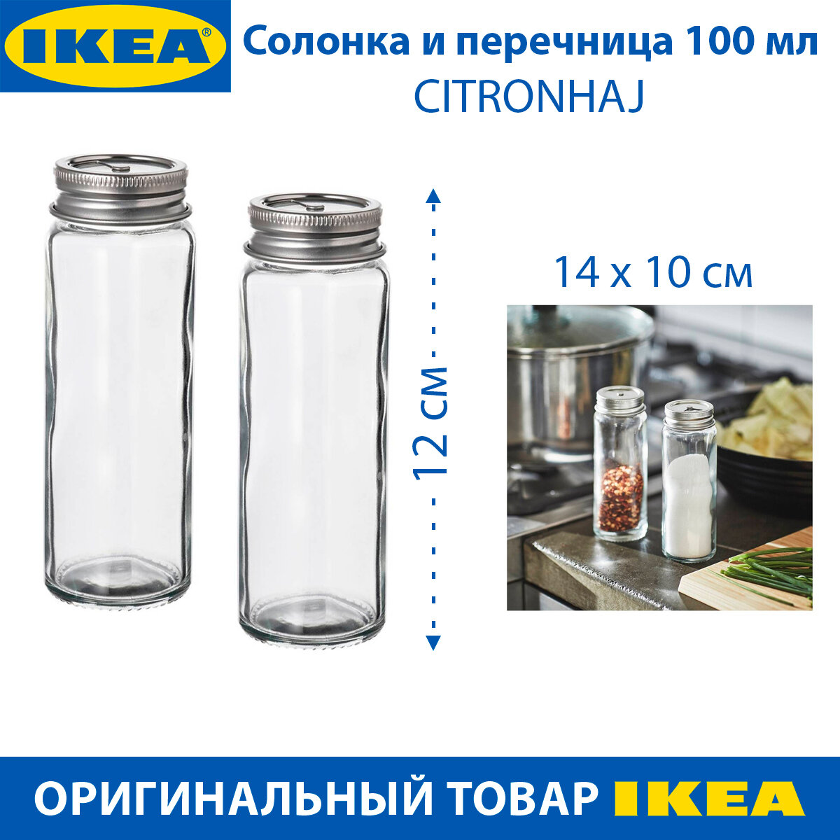 Солонка и перечница IKEA CITRONHAJ (цитронхай), стеклянные, 100 мл, 12 см, 2 шт в наборе интересное: