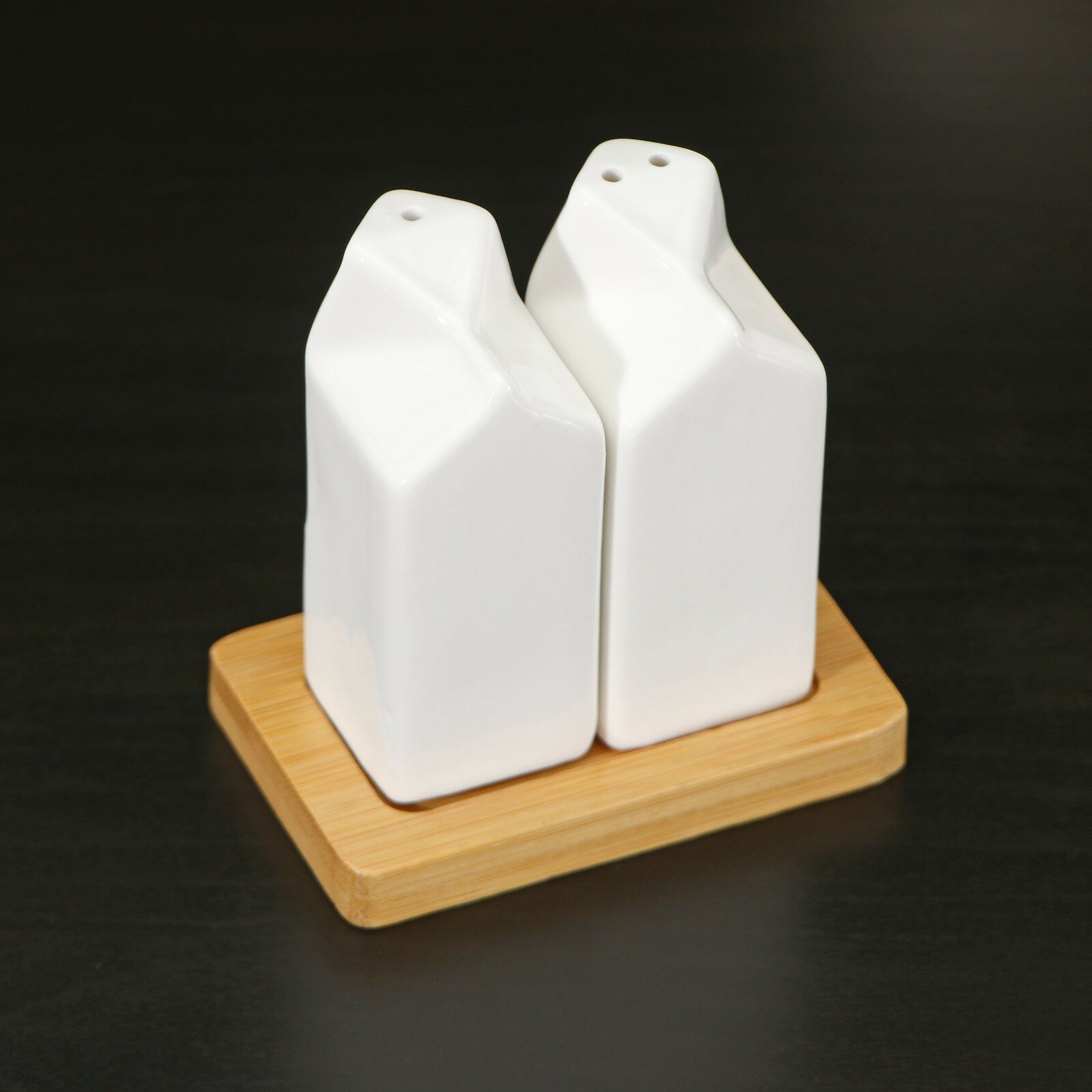 Набор фарфоровый для специй на деревянной подставке, 3 предмета: солонка, перечница, подставка, цвет белый интересное: