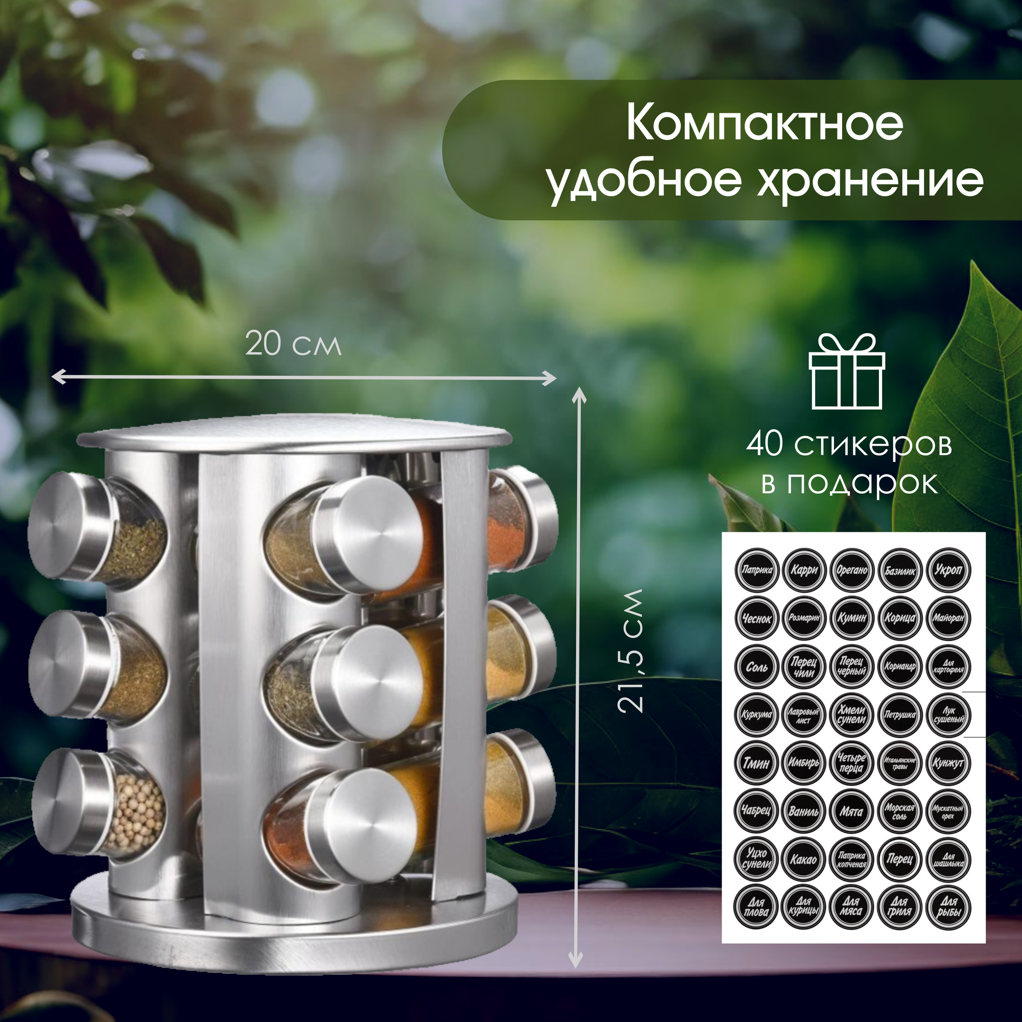 Набор для хранения специй 20 шт. с вращающейся подставкой со стикерами с названиями специй