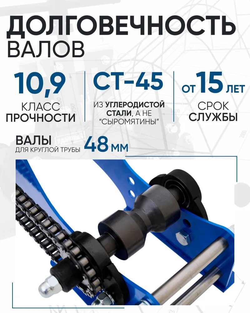 | Комплектация | трубогиб удачный премиум, валы для круглой трубы на 48 мм - 3 шт, гарантийный талон, инструкция |
