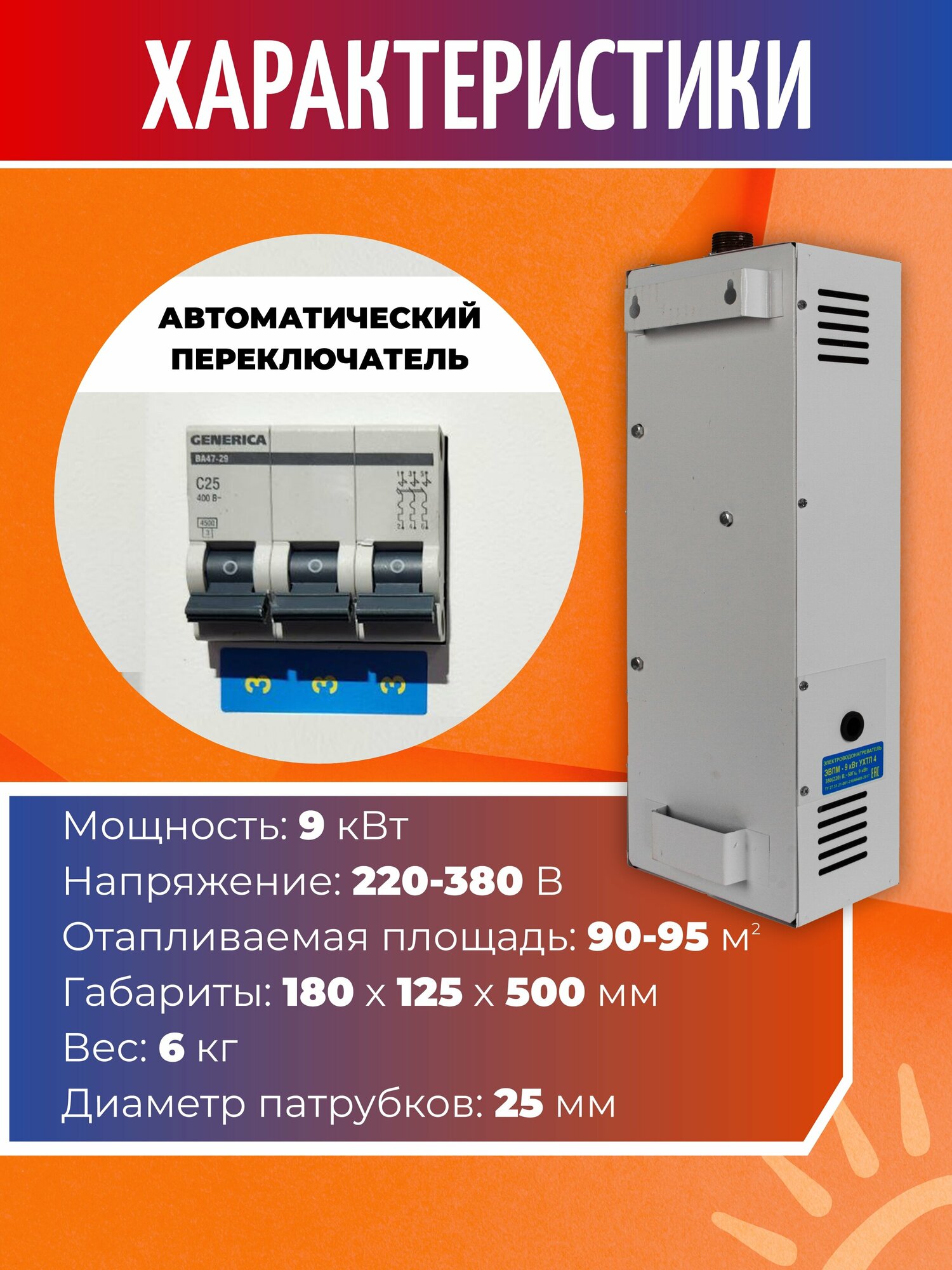 Электрический котел отопления, электрокотел ЭВПМ 9 кВт., с ТЭН из нержавеющей стали, на автоматах 220В или 380В. интересное: