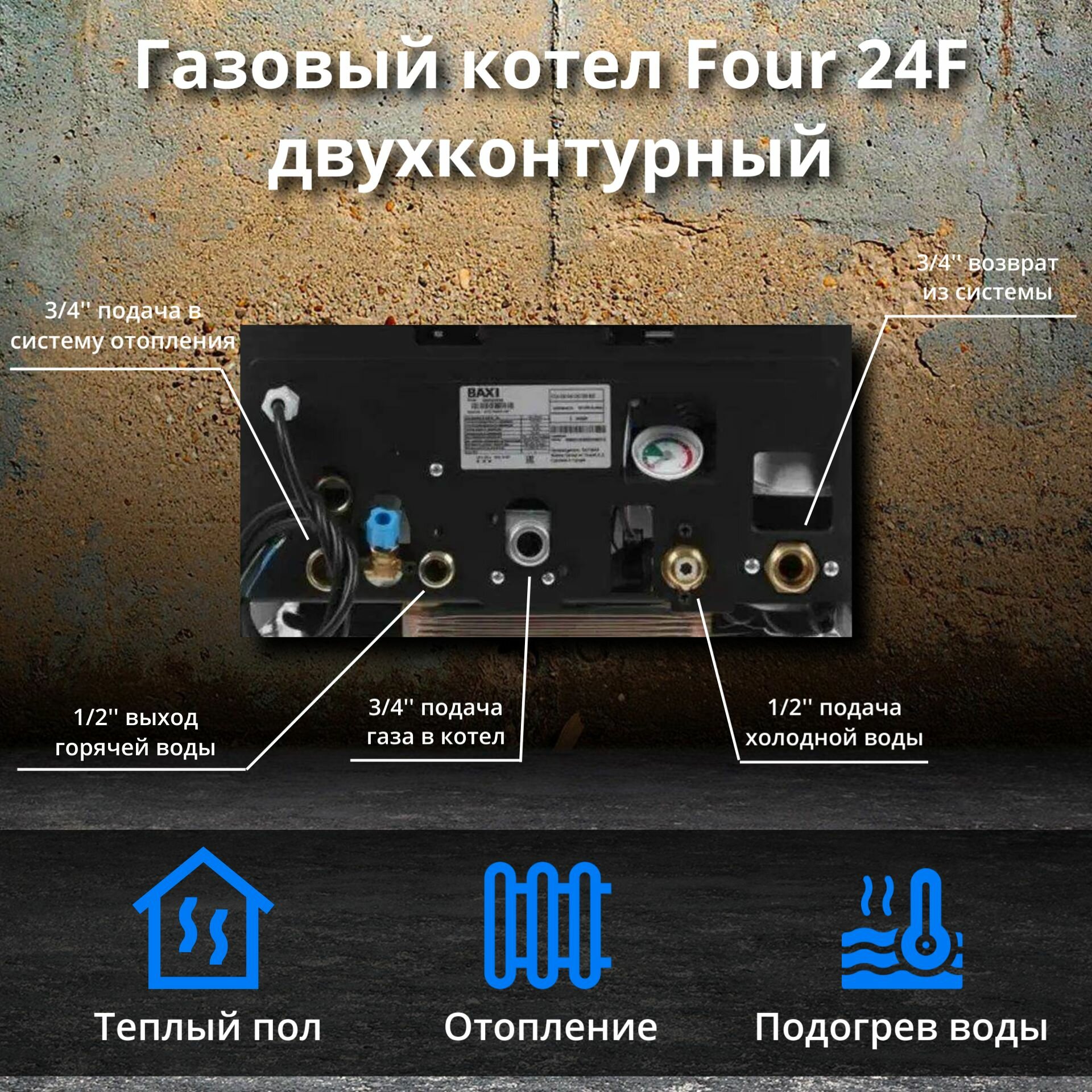 СохранитьНастенный газовый котел BAXI ECO FOUR 24F+дымоход В подарок (24 кВт), газовый, для отопления, турбированный, настенный, двухконтурный интересное: