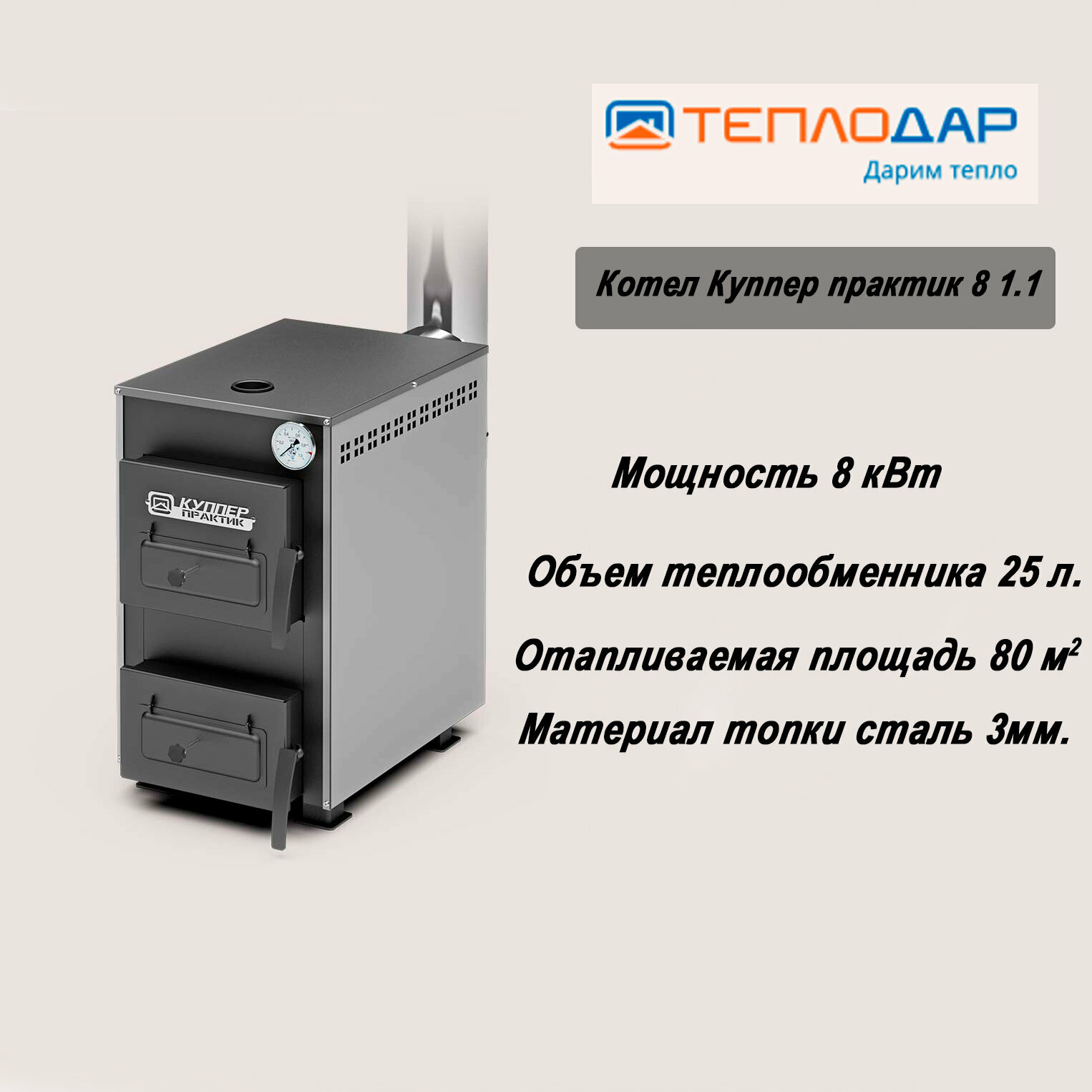Купить Котел твердотопливный Теплодар Куппер Практик-8 (1.1)