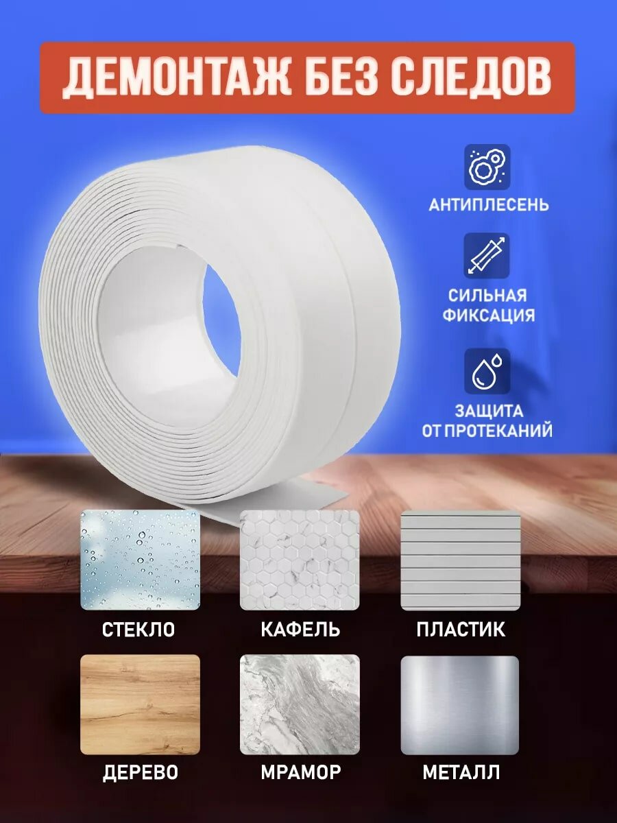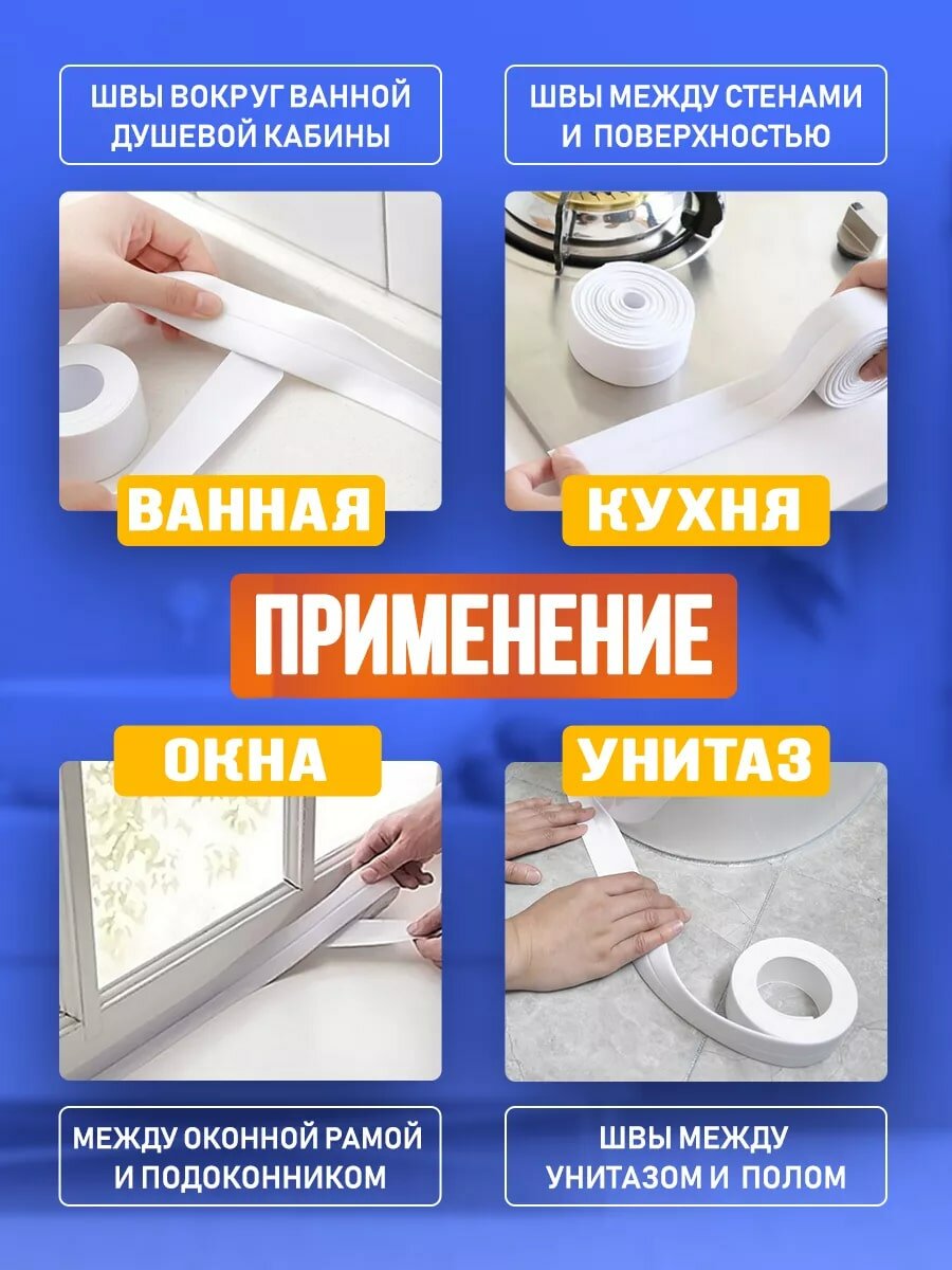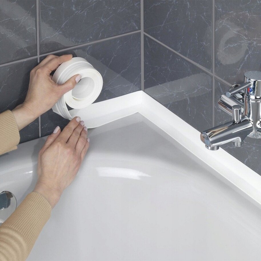 Бордюрная самоклеющаяся лента для ванны, раковины, унитаза, плиты, окон белая 3,8 см х3,20 м. Водонепроницаемая, устойчивая к плесени. интересное: