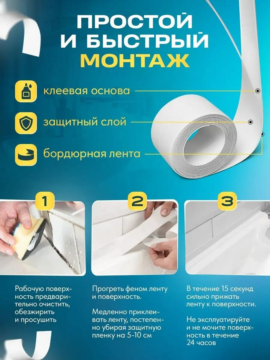 Ниже Вы можете прочитать отзывы на Бордюрная самоклеющаяся лента для ванны, раковины, унитаза, плиты, окон белая 3,8 см х3,20 м. Водонепроницаемая, устойчивая к плесени., ознакомится с подробными характеристиками, посмотреть интересные обзоры и фотографии на Бордюрная самоклеющаяся лента для ванны, раковины, унитаза, плиты, окон белая 3,8 см х3,20 м. Водонепроницаемая, устойчивая к плесени..