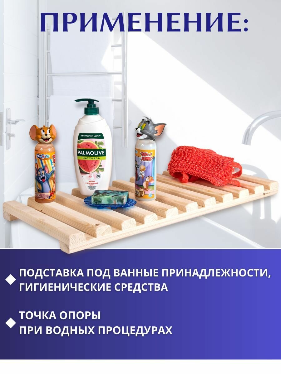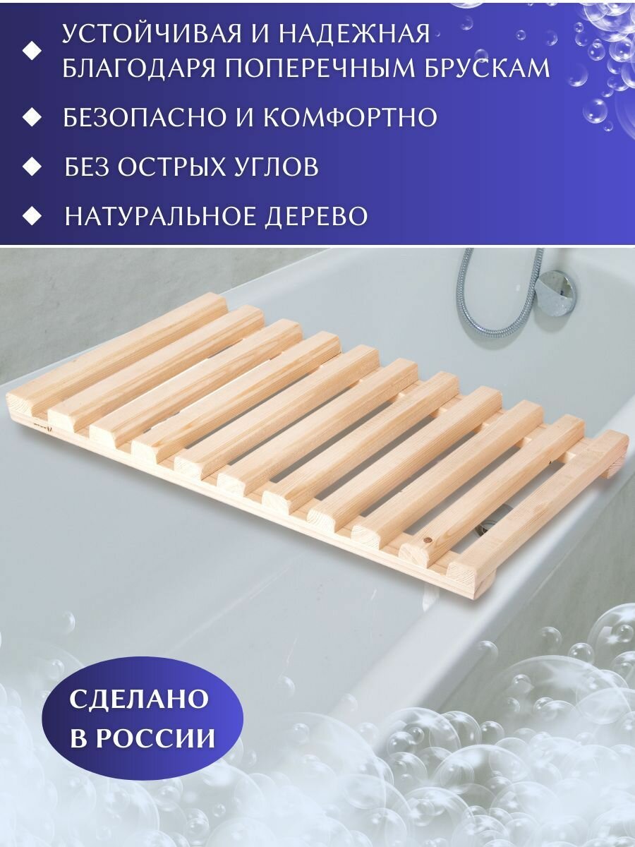 Сиденье на ванну / Решетка для ванной 70х30х5см, средний поперечный брус / Подставка деревянная интересное: