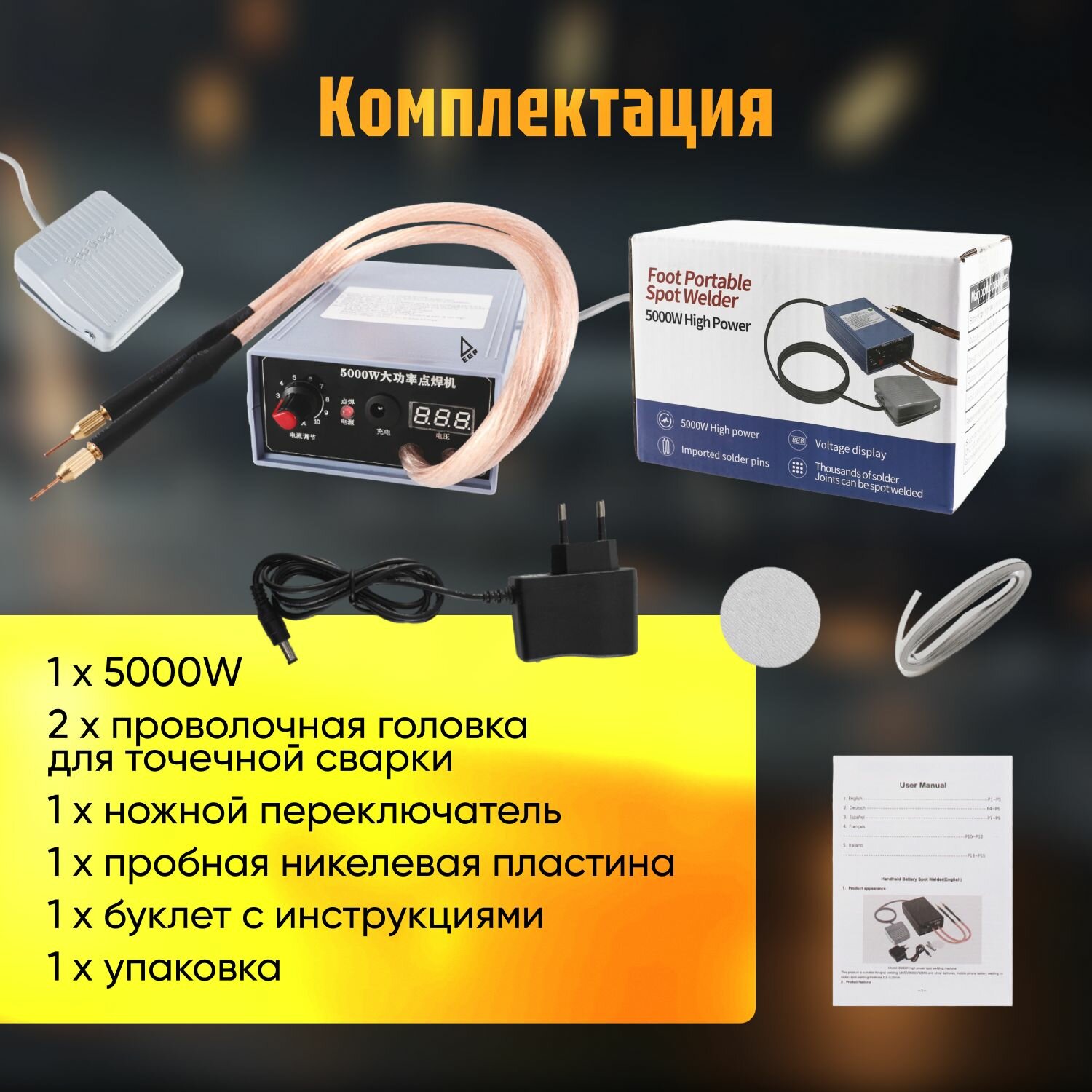 Высокомощный портативный сварочный аппарат для точечной сварки 5000 Вт с педалью (Ф)