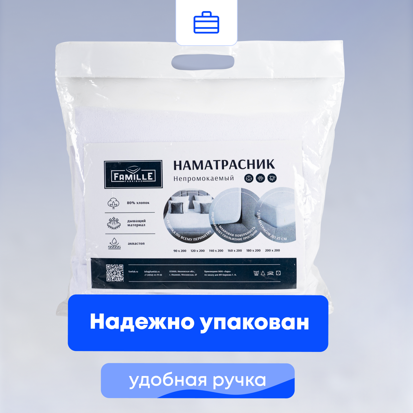 Наматрасник 140х200 непромокаемый, резинка по периметру, борт до 25 см, Famille Fabrique, защитный, водонепроницаемый, чехол на матрас, топпер на матрас или диван