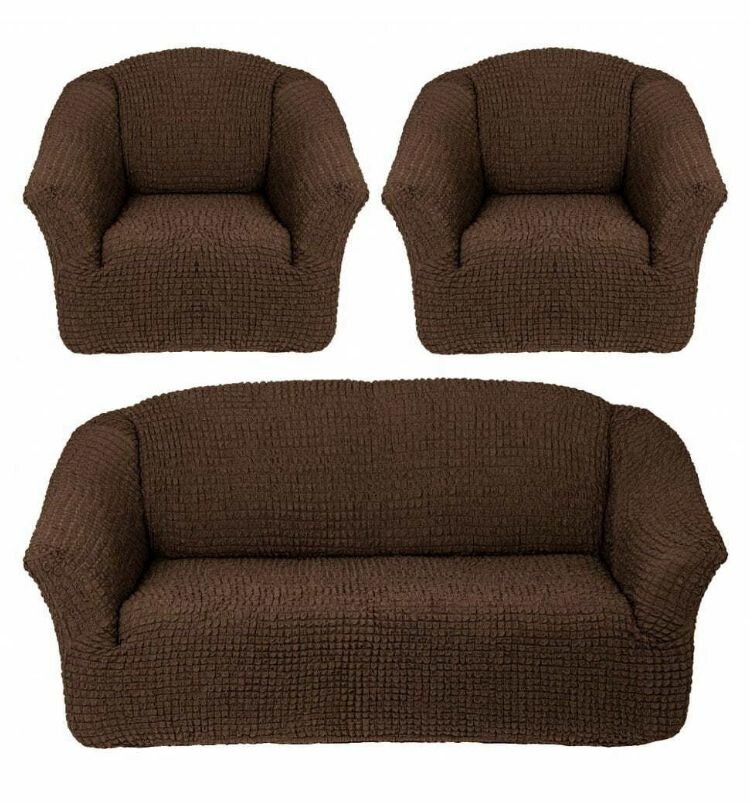 Купить Чехол на диван и 2 кресла без оборки, диван трехместный, на резинке, универсальный, чехол для мягкой мебели,комплект.