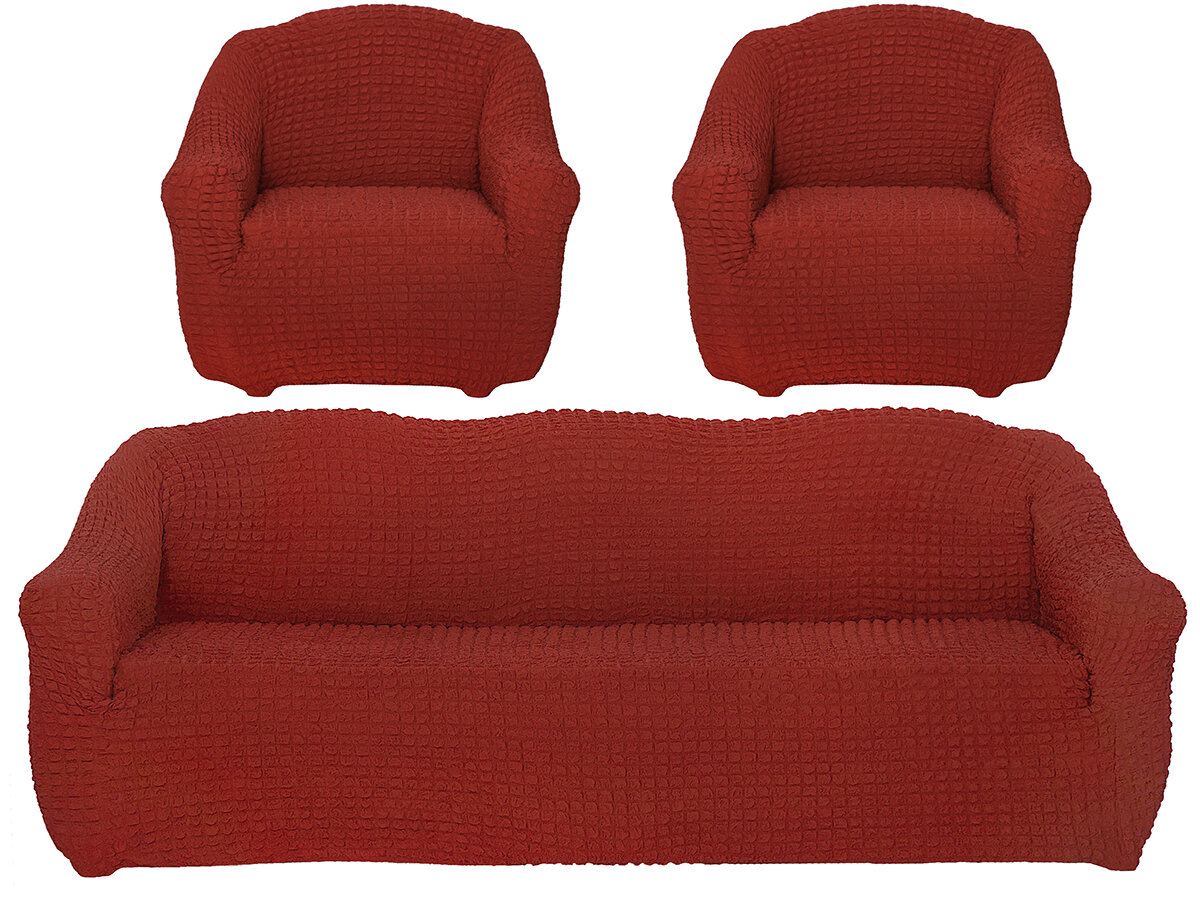 Купить Набор чехлов на трехместный диван и кресла без оборки, цвет Терракот