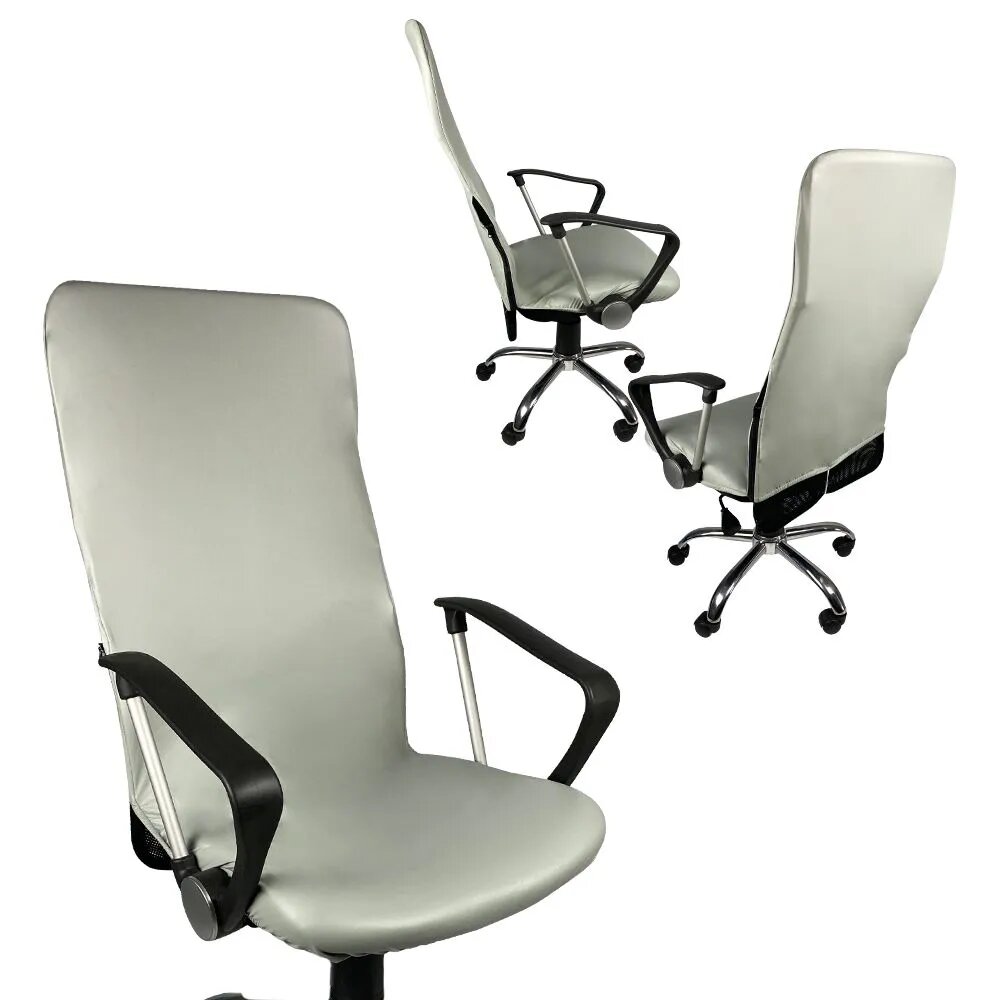 Купить Чехол на мебель для компьютерного кресла гелеос 515М, размер М, кожа, светло-серый