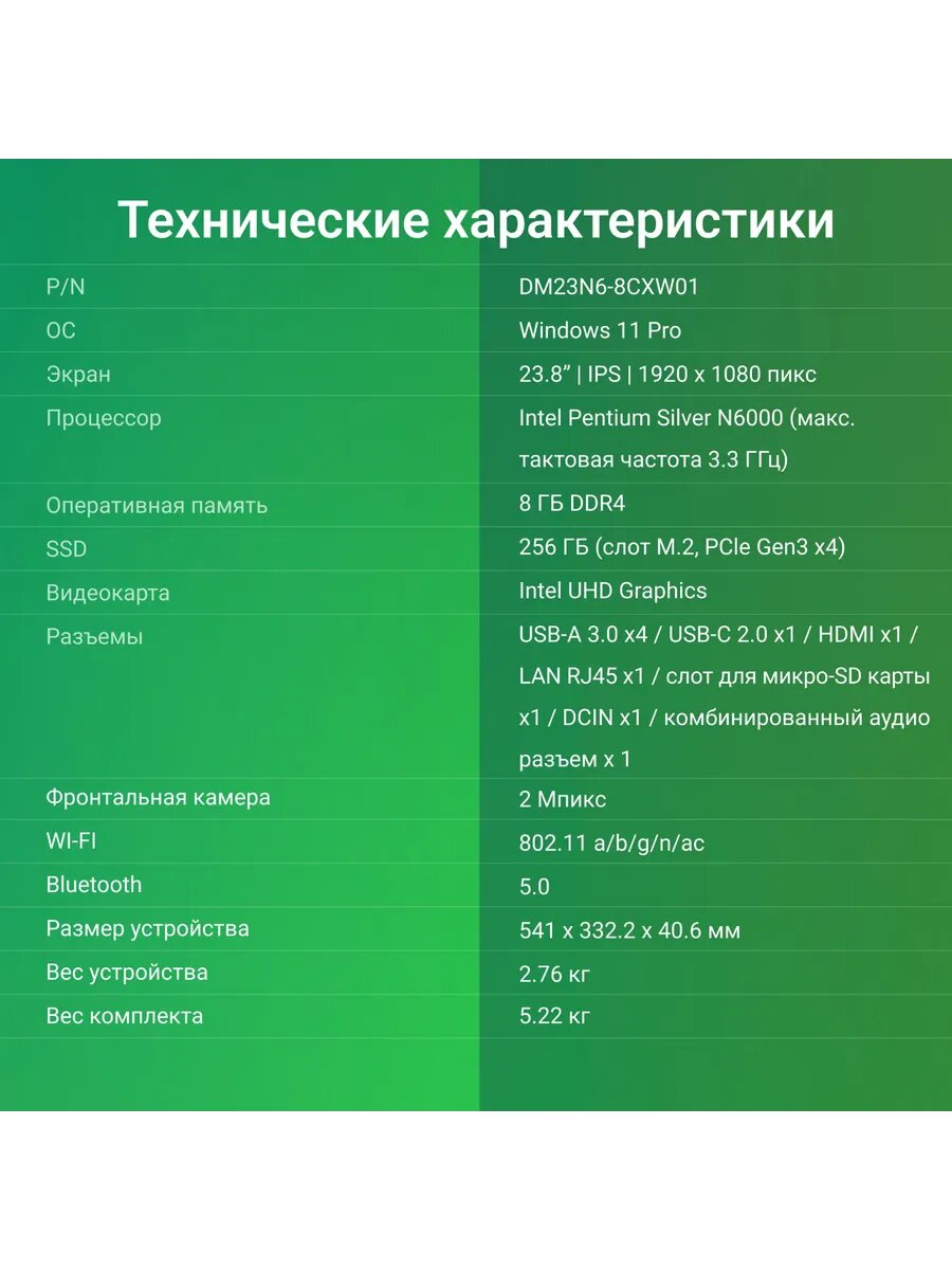 23.8" Моноблок Digma Optimum Full HD, Intel Pentium N6000, 8ГБ DDR4, 256ГБ SSD, Windows 11 Professional, черный [dm23n6-8cxw01]