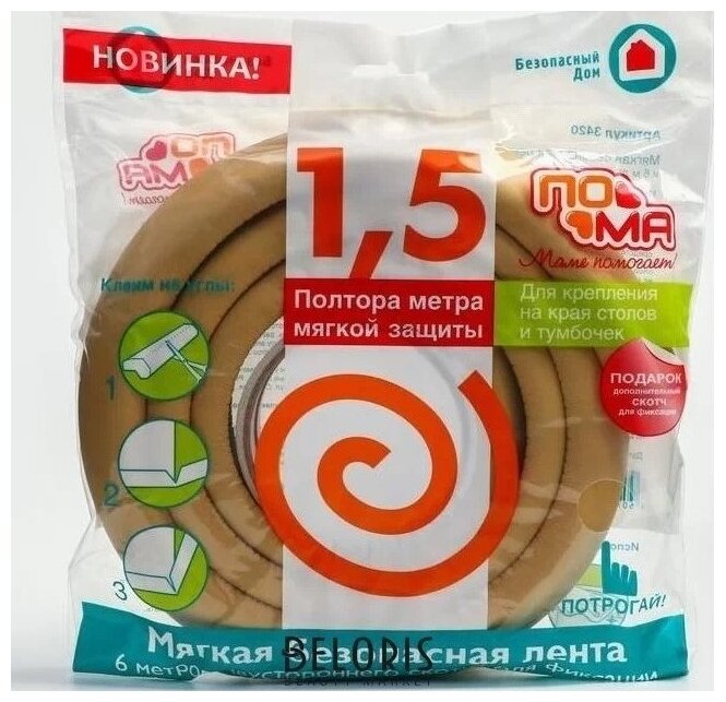 Купить Мягкая безопасная лента для углов с дополнительным набором наклеек, 1,5м., 1 шт.