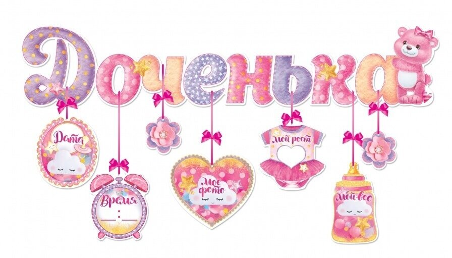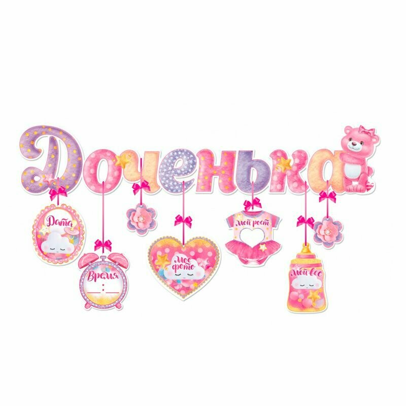 Купить Гирлянда с подвесками-метрикой "Доченька", 92см