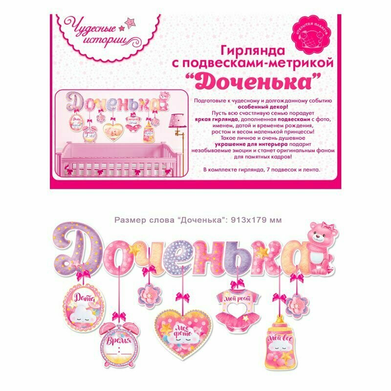 Гирлянда с подвесками-метрикой "Доченька", 92см интересное: