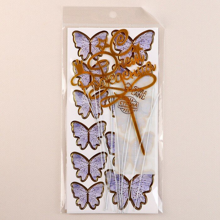 Набор для украшения торта «С днём рождения», бабочки, цвет сиреневый интересное:
