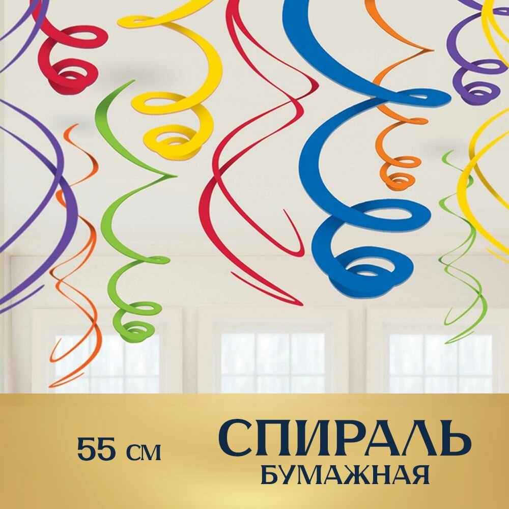Купить Гирлянда растяжка спираль Радуга бумажная, 55 см, 12 шт.